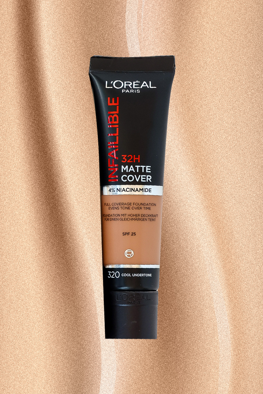Formula je obogatena s 4 % niacinamida, ki s časom pomaga izenačiti ten in kožo pomirja. Z visoko koncentracijo pigmentov v gladki tekoči formuli se podlaga naravno zlije s kožo. Tako naj ne bi bilo več strahu, da boste na predelu vratu zagledali značilen, ne preveč lep, mejnik. To je sicer pogosta napaka pri ličenju.