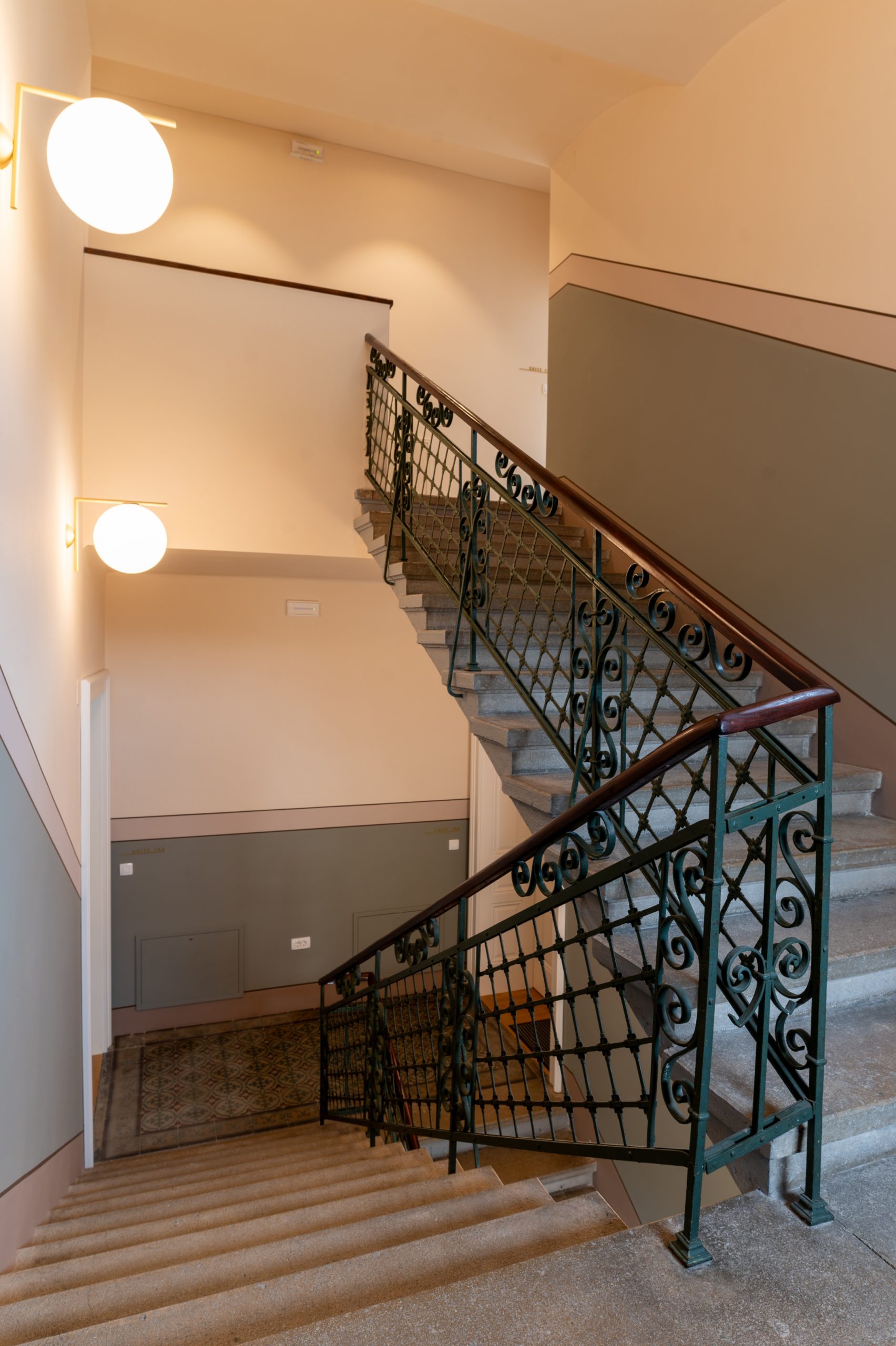Največji čar hiše, mozaik in ograja na stopnišču, so celo ostali avtentični iz leta 1906. Vstop v veličastno stavbo na Trgu Svobode 4 razkriva zgodovinski šarm, ki očara še tako zahtevno oko.