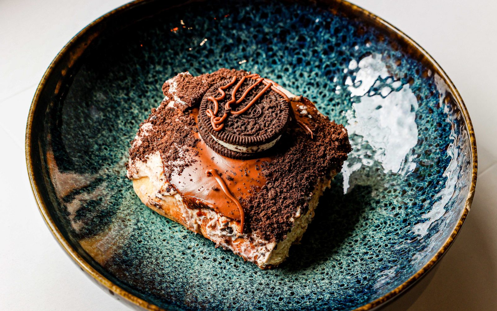 Sladica ni prava sladica, če ni sestavljena iz več komponent. Po želji lahko izberete pravo kalorijsko bombo, ki vključuje še sladkorno peno, majhne cimetove rolice ter posip. Količina vsega (in verjetno tudi energijska vrednost) je primerljiva s konkretnim kosilom, saj sem bila ob koncu precej sita.