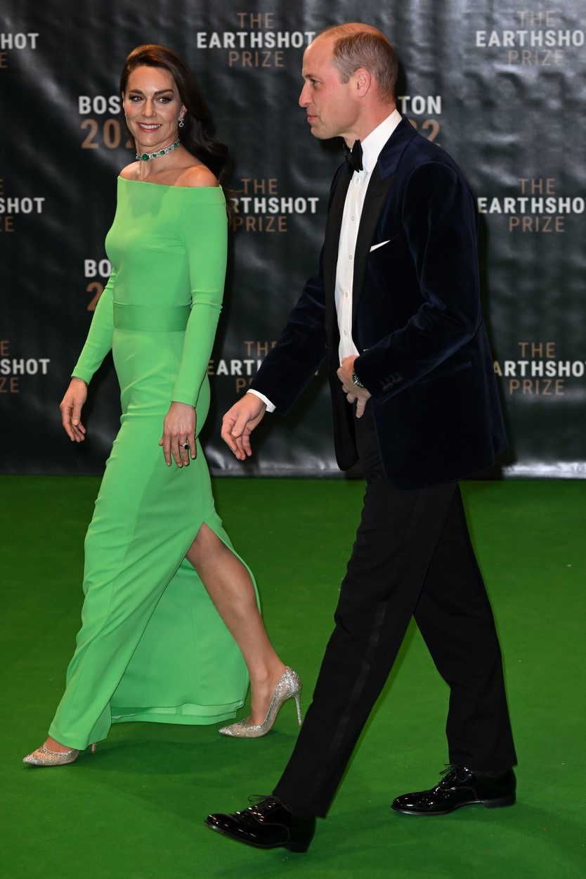 Princ William je oblekel temno zelen žameten suknjič, ki ga je nosil že ob drugih priložnostih, princesa Kate pa je izbrala oprijeto zeleno obleko Solace London, ki jo je za to priložnost najela na britanski modni platformi HURR za sto britanskih funtov (okrog 116 evrov).