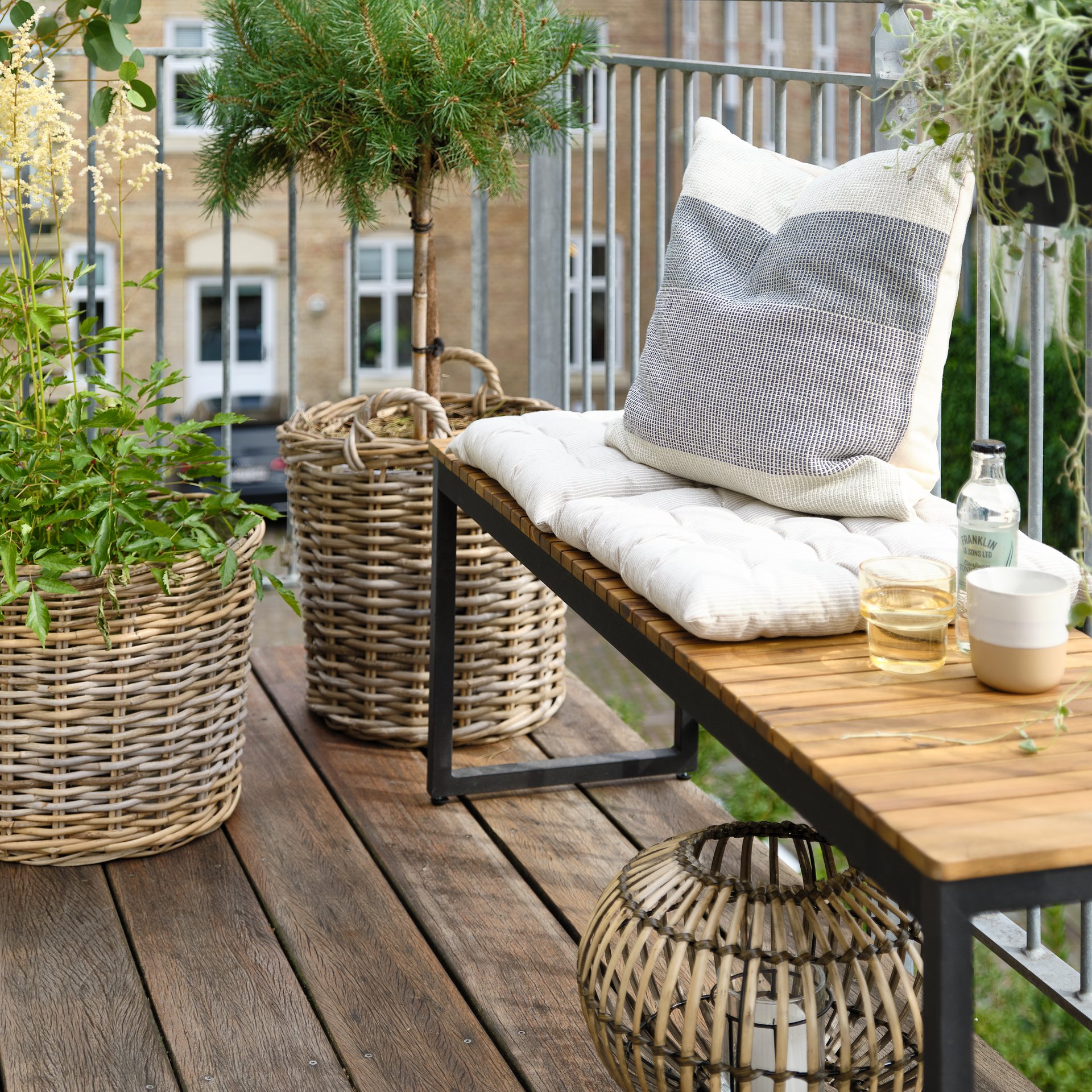 Pri zunanjih prostorih je treba upoštevati odpornost na vremenske vplive, zato je treba posebno pozornost nameniti izbiri kakovostnejših materialov, ki bodo dolgotrajnejši. Če je vaša balkonska površina majhna, jo opremite z bistro mizo z ujemajočimi se zložljivimi stoli, ki bodo ustvarili intimno vzdušje, idealno za pitje kave z razgledom ali za delitev obroka (in uživanje v njem) z najljubšo osebo.
