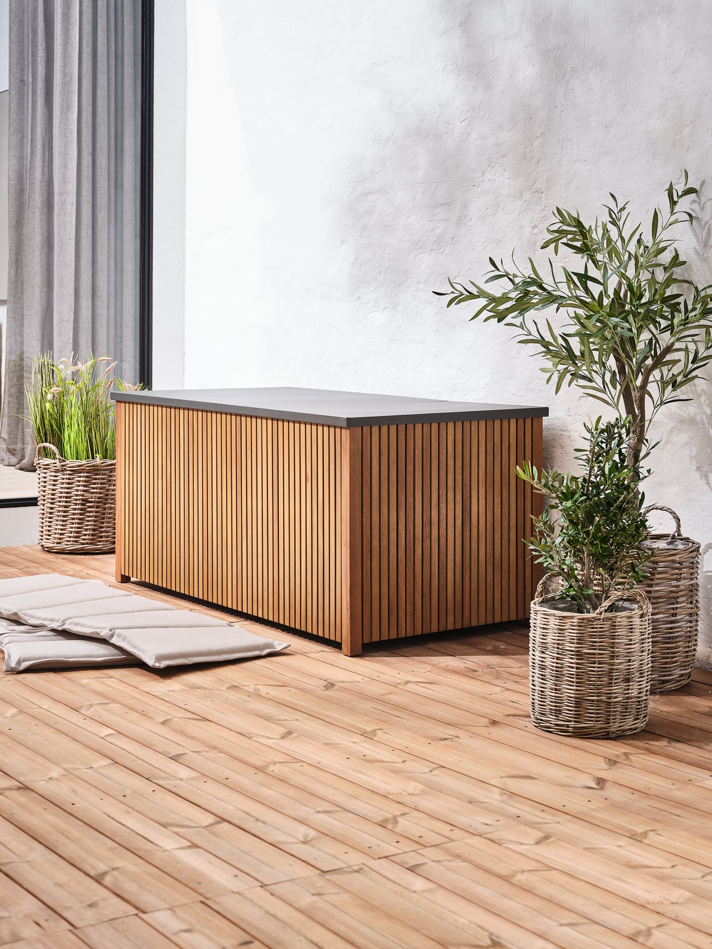 Primer so praktične vrtne klopi in zaboji, ki so dovolj veliki, da v njih spravimo odeje, ki jih čez dan ne uporabljamo, pridejo pa prav v še vedno svežih spomladanskih večerih in jutrih.