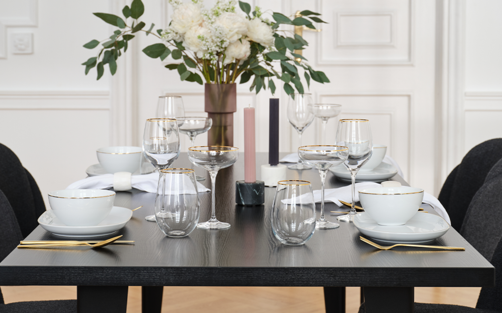 Izbirate lahko med romantičnim, minimalističnim ali klasičnim stilom, ki vključujejo najpopularnejše trende pri opremi doma kot so vafelj tkanina, fluidne teksture vaz in svetil, zlat jedilni pribor, kamen in marmornati vzorci ter les.