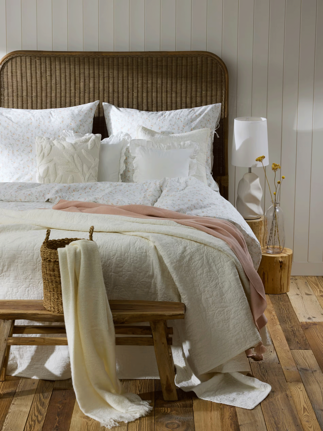 V romantični kolekciji prevladujejo naravni, pastelni zeleni in modri odtenki z dodatkom obveznih cvetličnih vzorcev in pletenega tekstila, ki ustvarjajo rustikalno in nostalgično domače vzdušje.