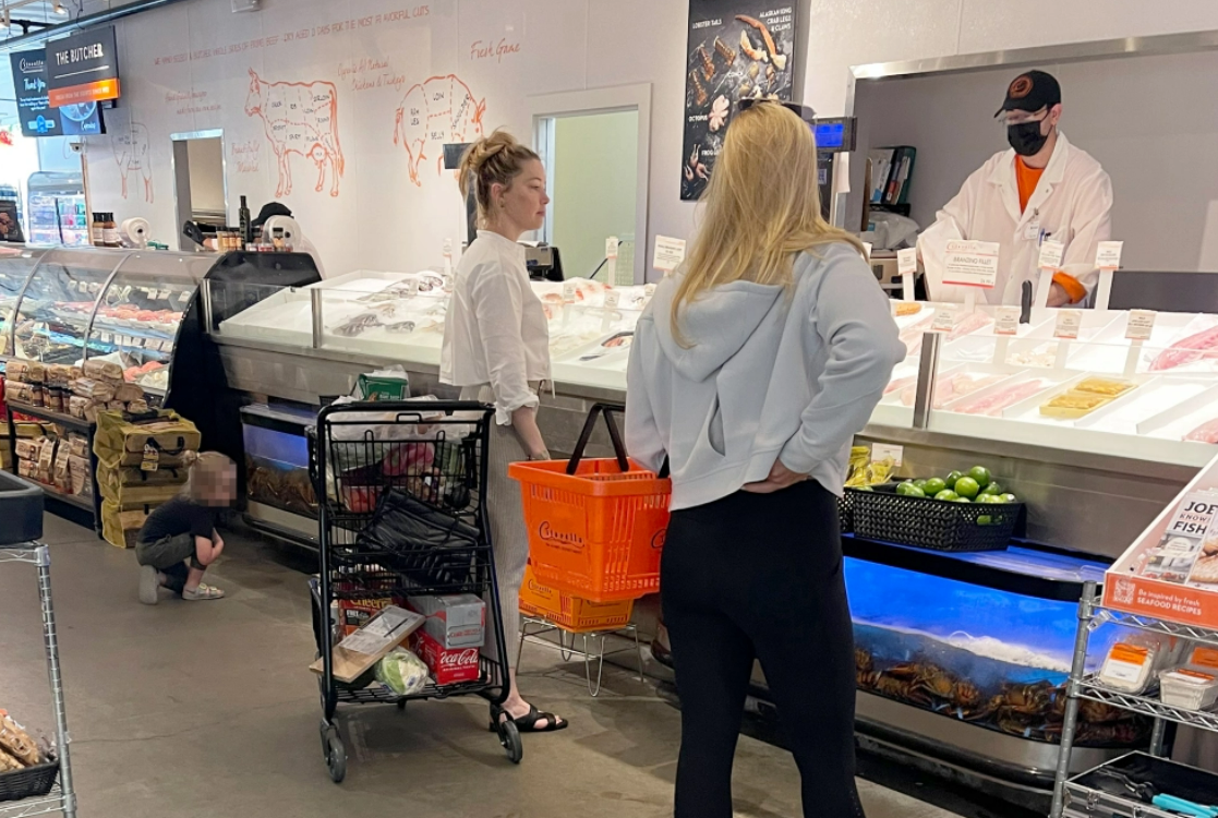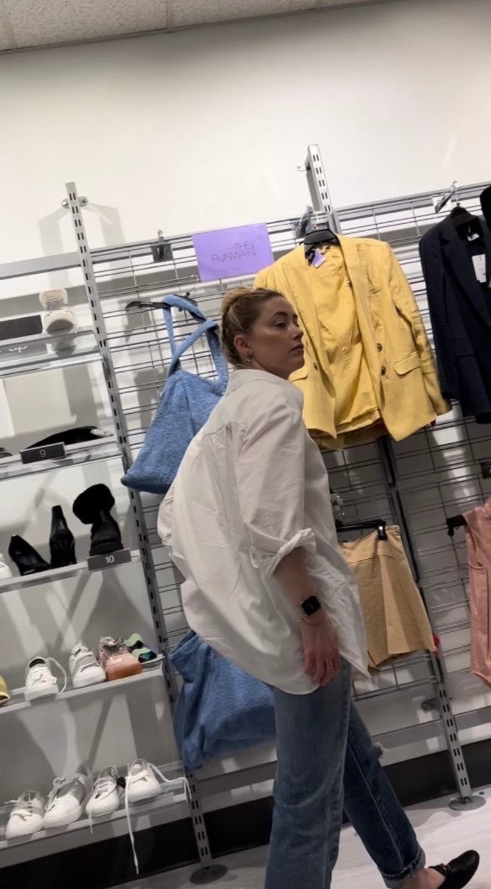 Na fotografijah, ki jih je v TJ Maxxu posnel zviti kupec, Heardova nosi kavbojke, preveliko belo srajco in natikače, medtem ko si ogleduje oblačila. Med nakupovanjem ji je družbo delala njena sestra Whitney Heard, ki ji je stala ob strani ves čas sojenja in pričala proti Deppu.