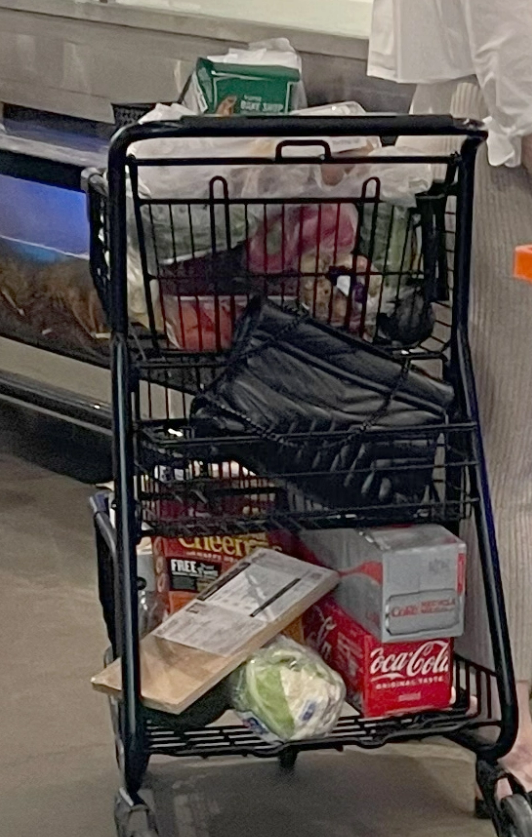 Nekaj dni zatem so jo opazili še v supermarketu, kjer je svoj nakupovalni voziček napolnila s čipsom, dietno kokakolo in cvetačo, v njem pa so bili še piškoti, rdeča paprika in zelena solata.