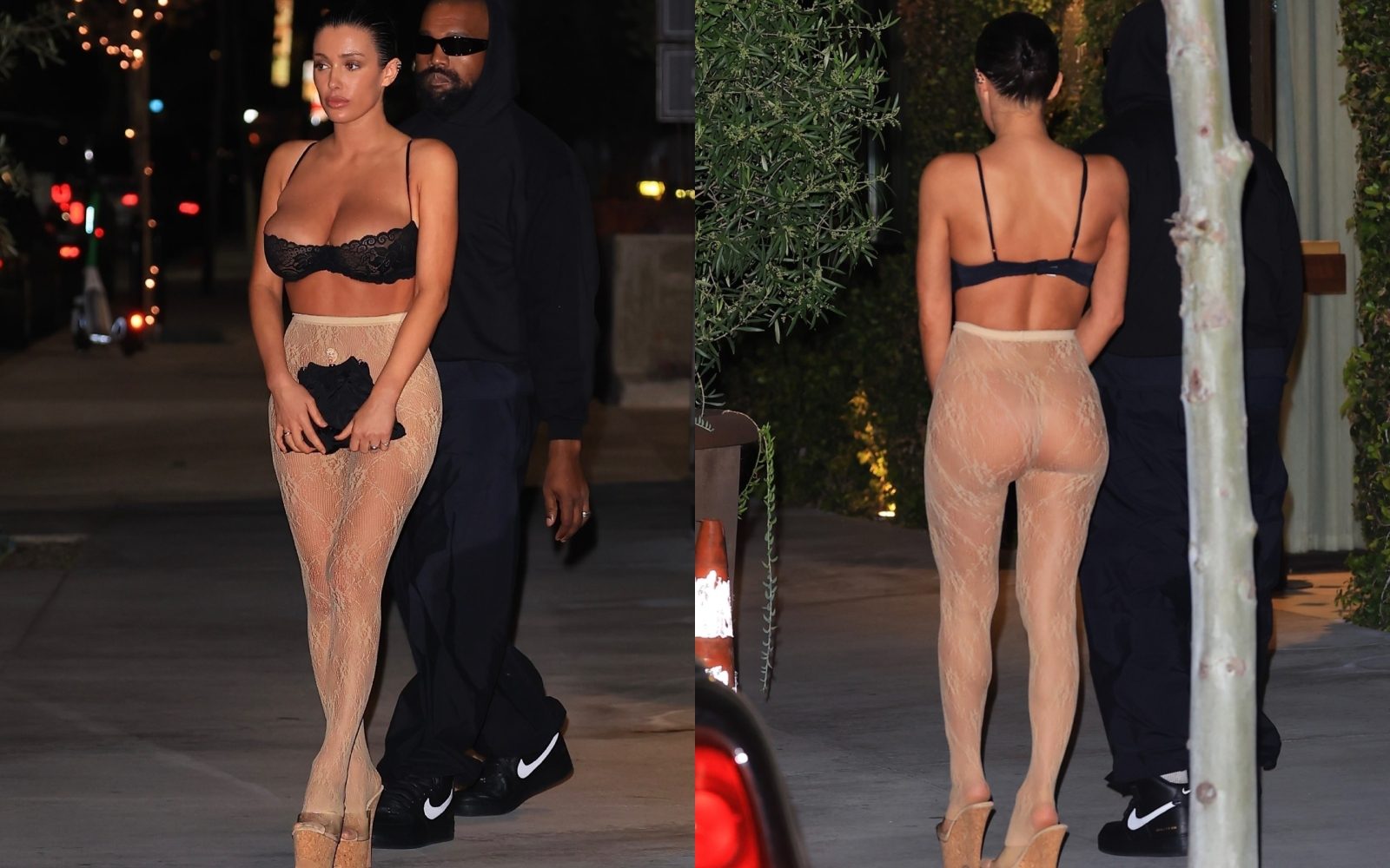 Bianca Censori na zmenek le v modrčku in prosojnih najlonkah