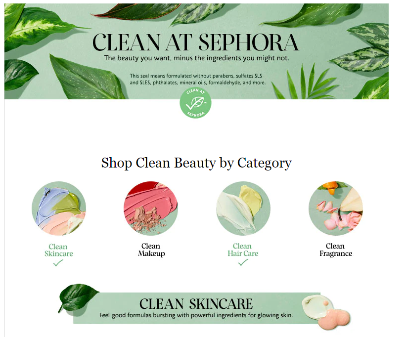 Sephora je bila pred kratkim tožena zaradi zavajanja kupcev glede oznake Clean at Sephora. Ta oznaka je nameščena na vseh blagovnih znamkah, ki se oglašujejo kot Clean Beauty in imajo višje cene.