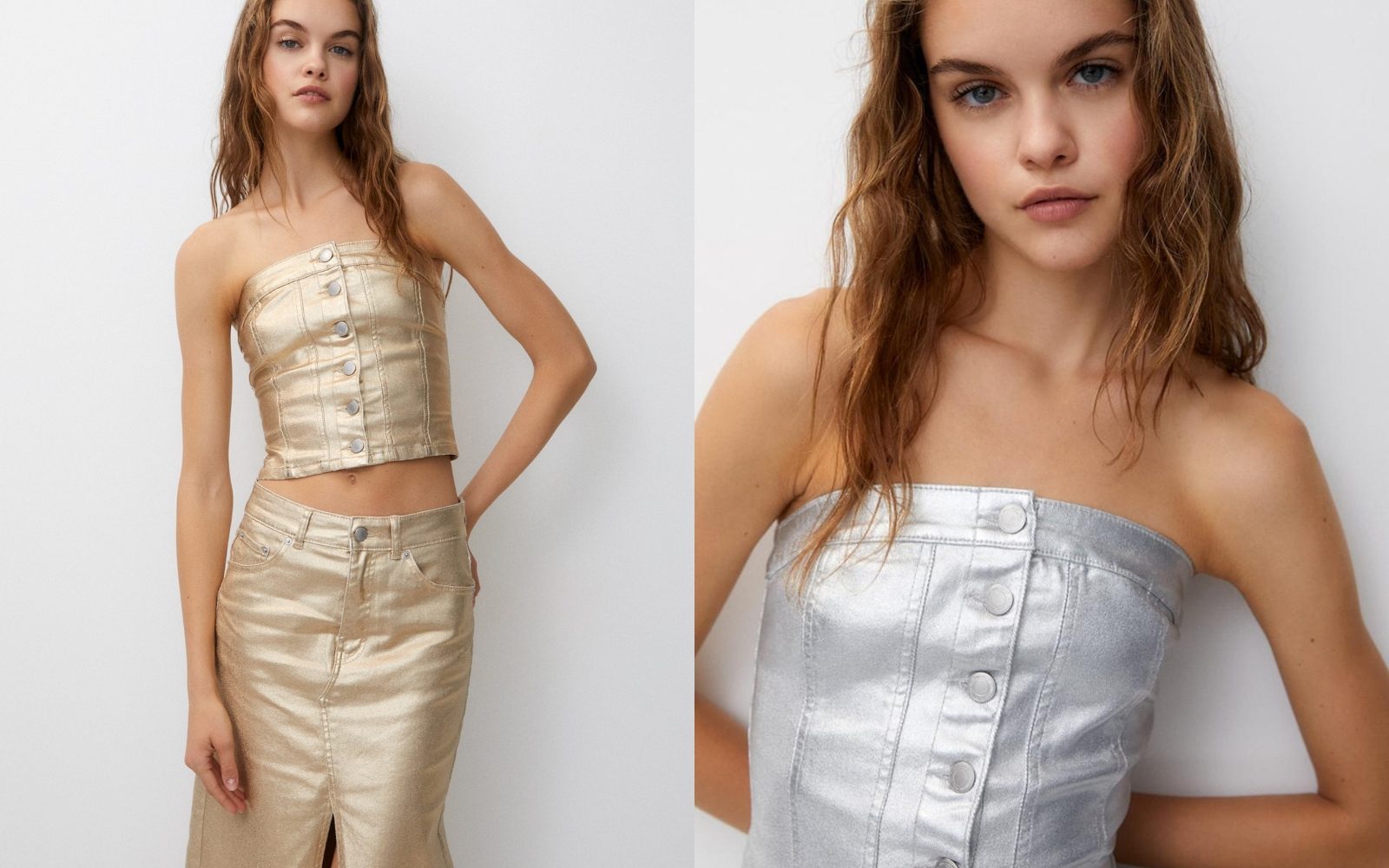 Pri znamki Pull&Bear smo naleteli na zanimivo kombinacijo teh dveh trendov, v ujemajočem se kompletu korzeta in maksi krila z razporkom.