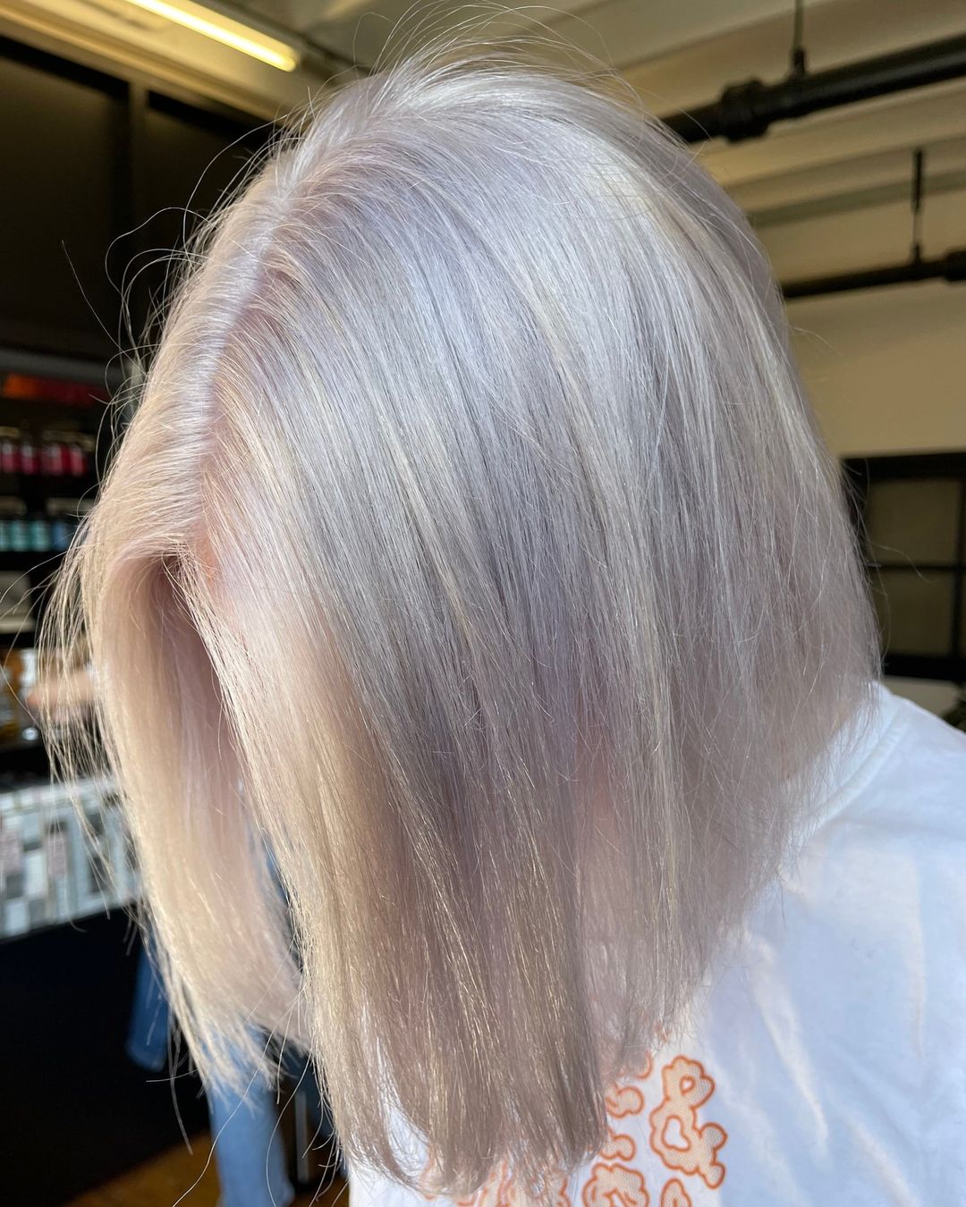 Svetla, biserno-srebrna barva združuje edinstveno mešanico hladnih platinasto blond tonov z modrimi in vijoličastimi podtoni, ki so videti kot notranja obloga lupine ostrig. Ta odtenek barve ustvari prefinjen in moderen videz, ki pristaja različnim odtenkom kože in je odlična izbira za vse, ki želijo eksperimentirati z netradicionalnimi barvami las, ne da bi bili preveč drzni.