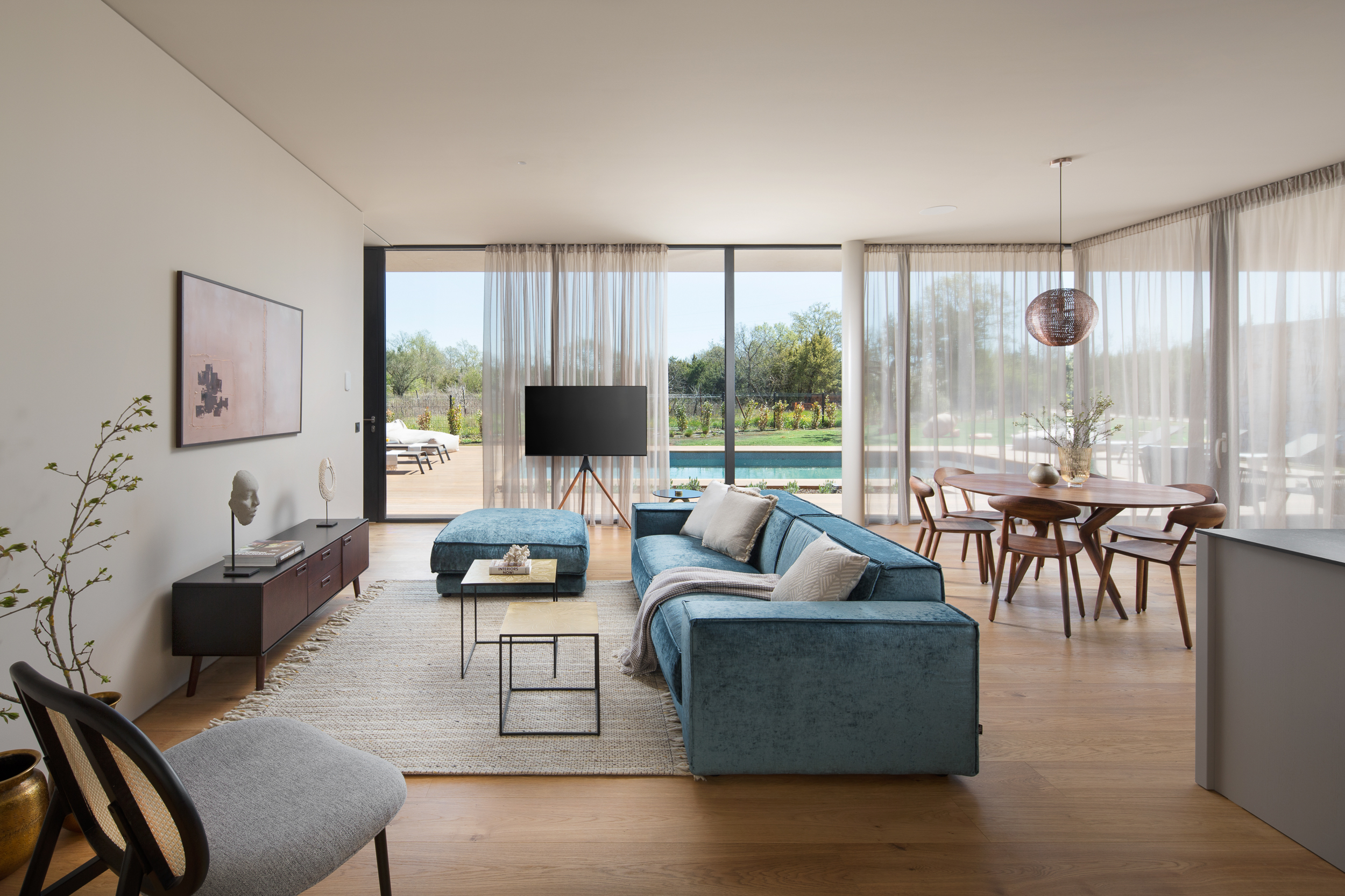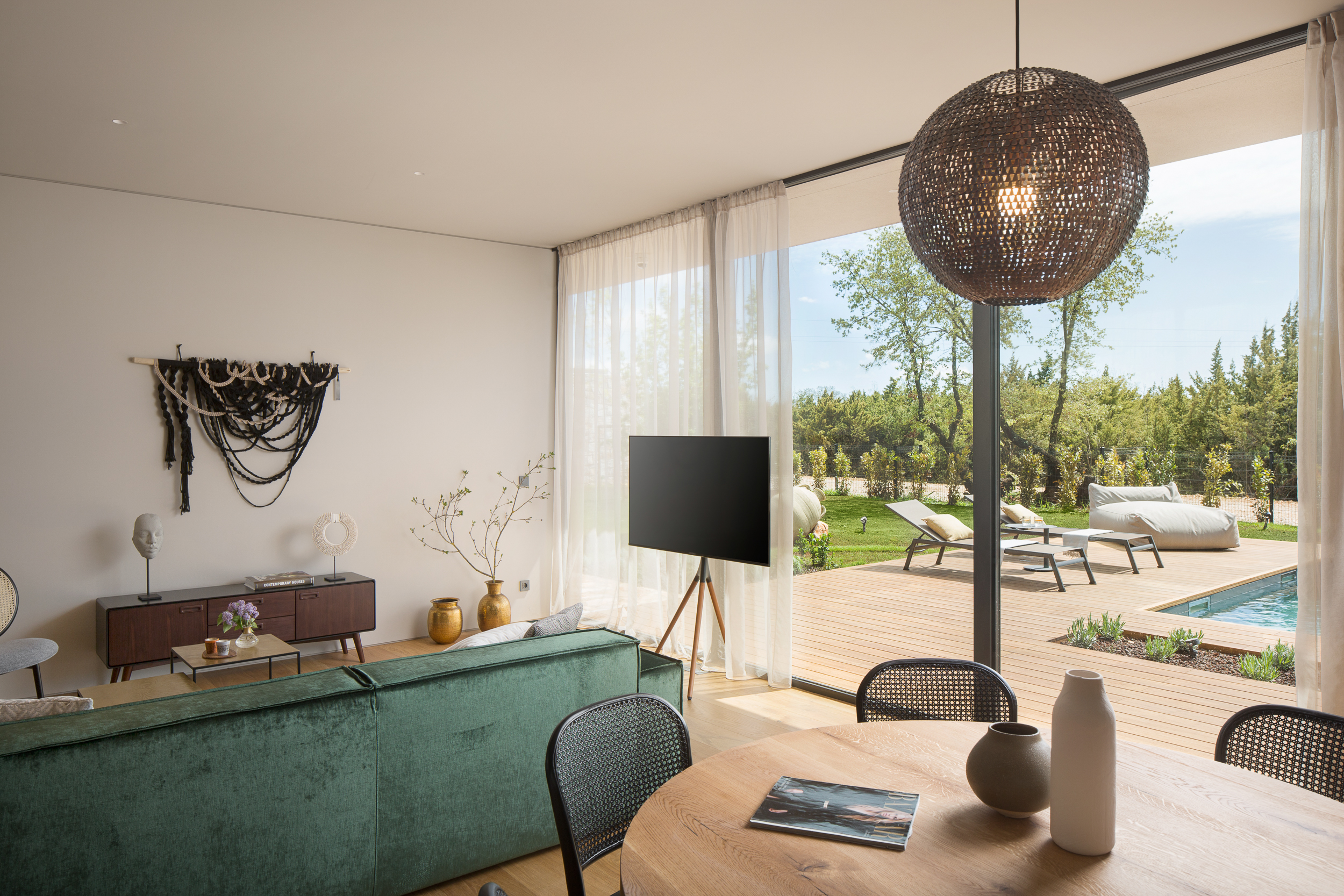Njena prvotna ideja je bila poiskati posestvo za eno hišo za lastne potrebe, a ker je na koncu našla večje zemljišče, se je porodila ideja o kompleksu treh vil. “Investicijski izziv,” pravi Maja. Prav to zemljišče je izbrala zato, ker je povsem obdano z naravo in omogoča popolno sprostitev in mir.