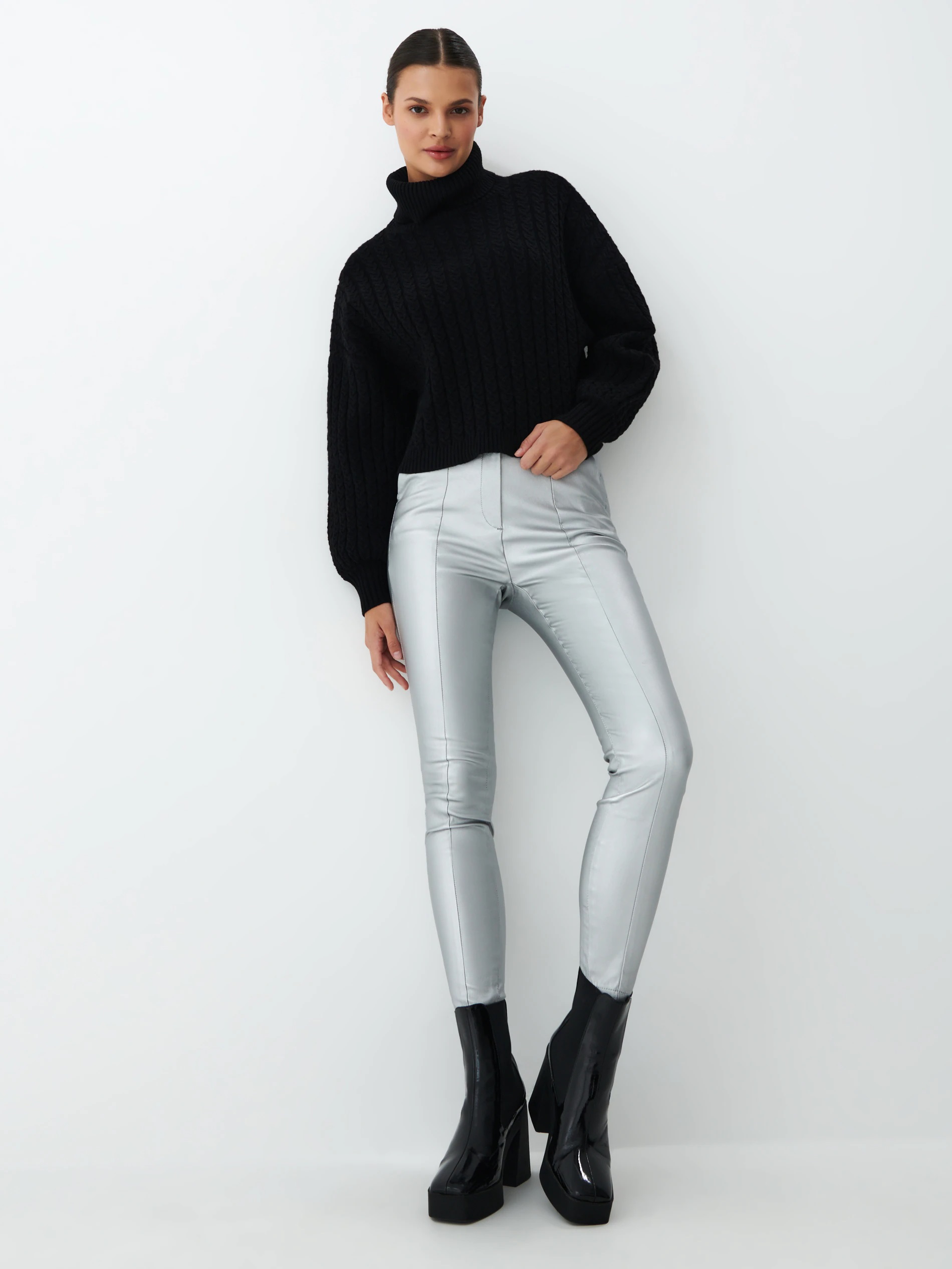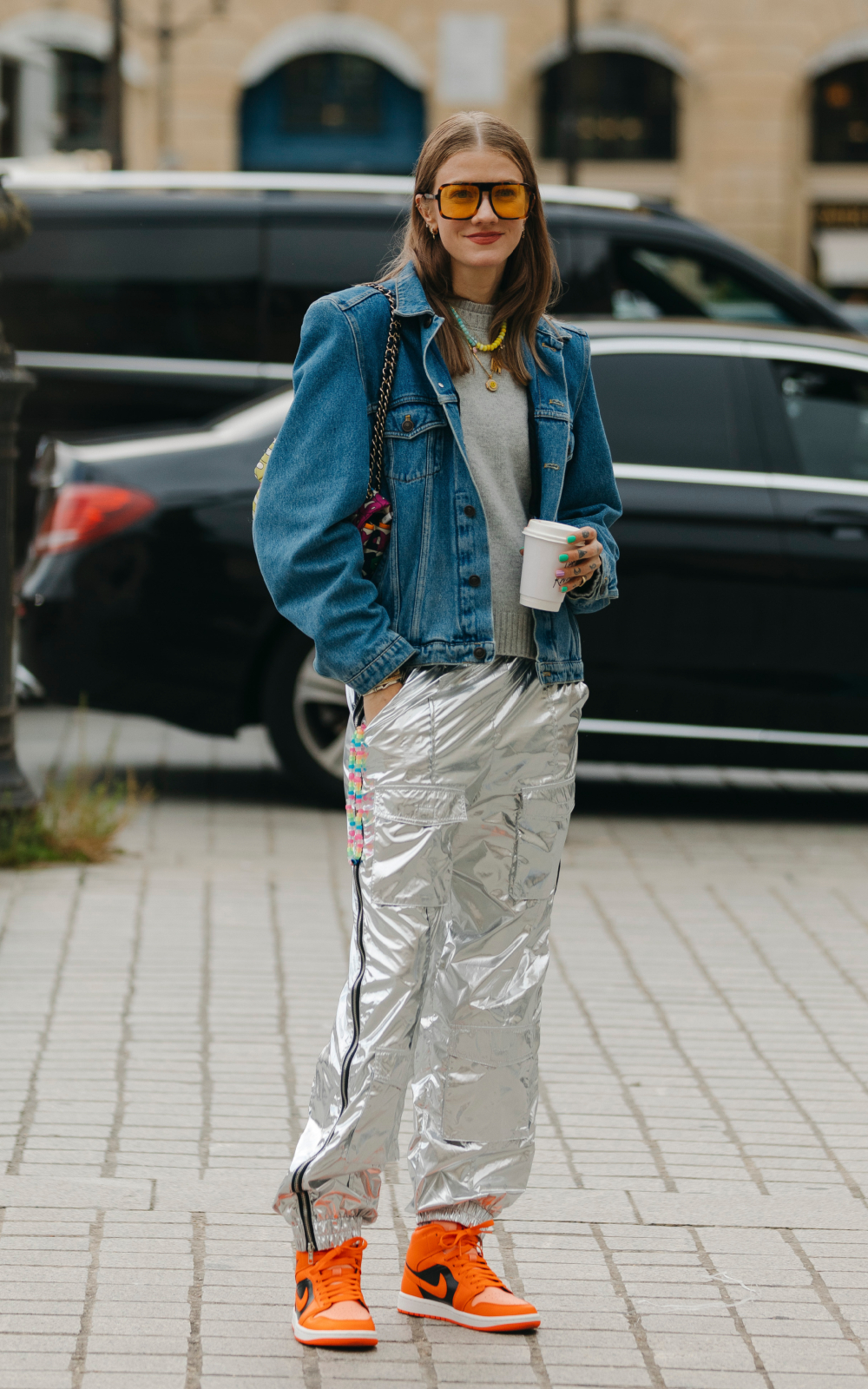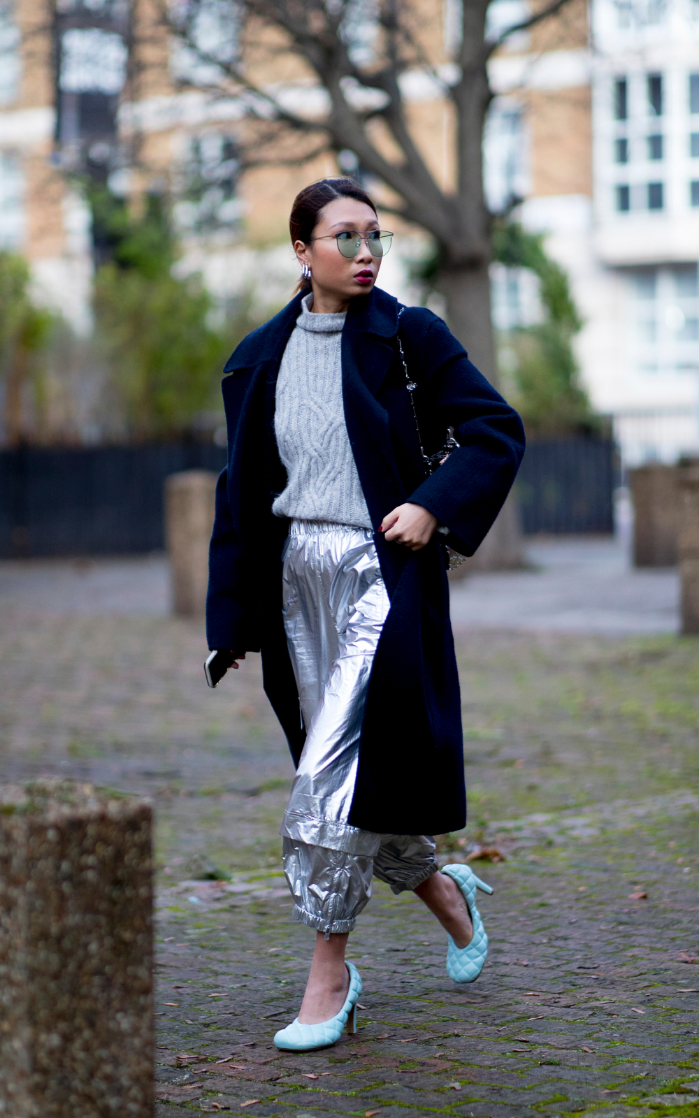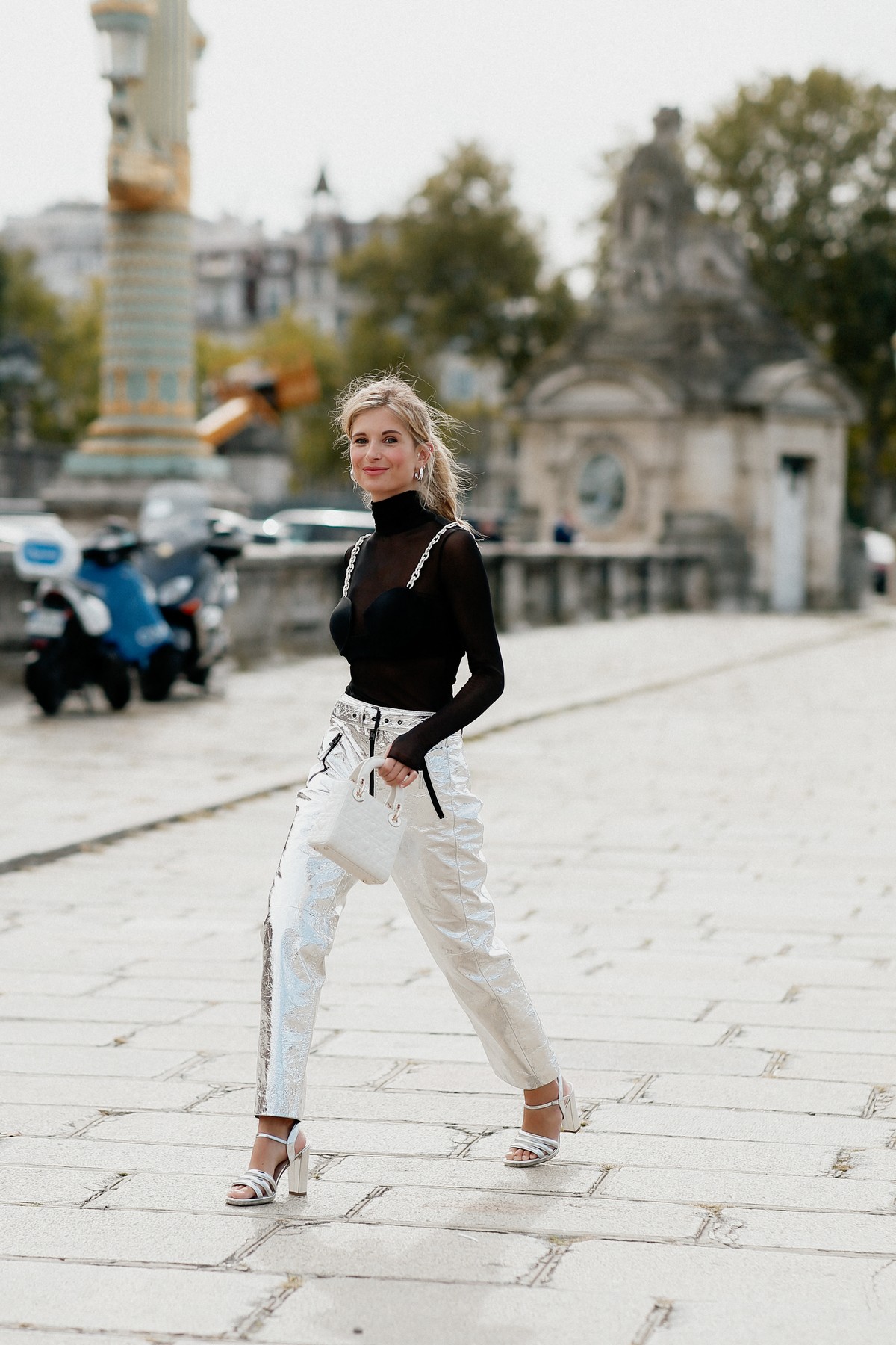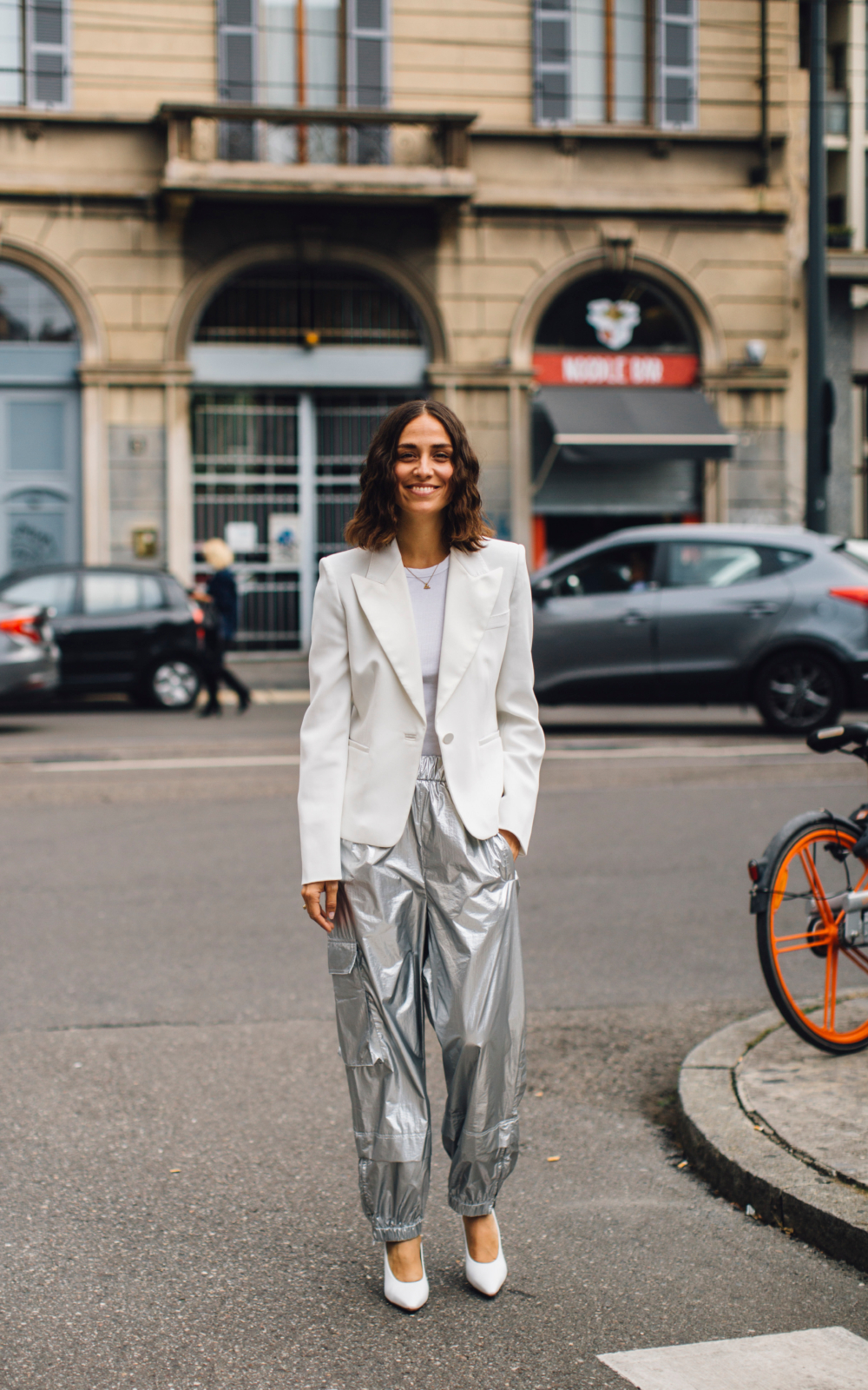 A pozor: obstaja razlika med srebrnimi kosi decembra in srebrnimi kosi spomladi. Spomladanski trend srebrnih hlač je namreč bolj na strani minimalizma in subtilnosti. Manj je več. Zraven kombinirajte preproste kose, ki bodo dopustili, da bodo srebrne hlače glavna zvezda.