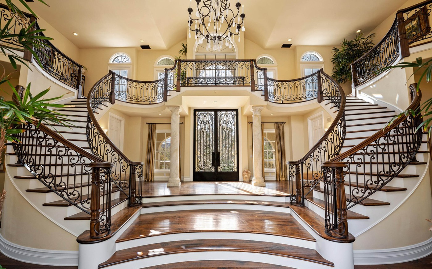 S svojim veličastnim zunanjim stopniščem, do potankosti urejeno razkošno okolico in številnimi balkoni pooseblja razkošno življenje. Do novega pravljičnega doma zakoncev vodi dolga, dramatična dovozna pot s prefinjenimi železnimi vrati.