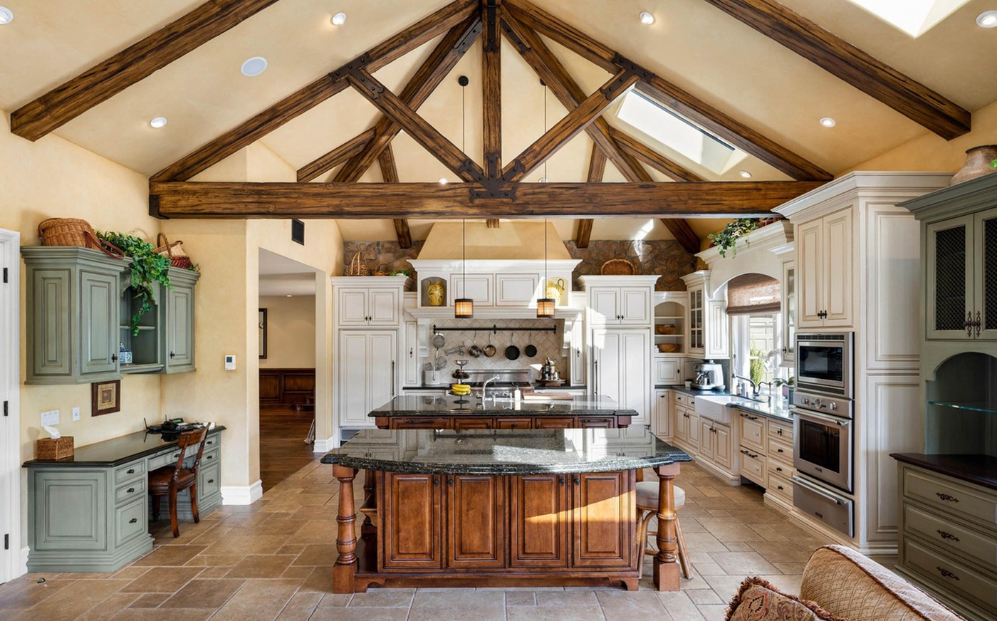 Obroke bosta zakonca pripravljala v ogromni kuhinji z dvojnim otokom z marmornatimi površinami, lesenim obokanim stropom ter krožnim jedilnim kotičkom. Kuhinja je povezana z dnevno sobo s kamnitim kaminom in francoskimi vrati, ki vodijo na dvorišče.