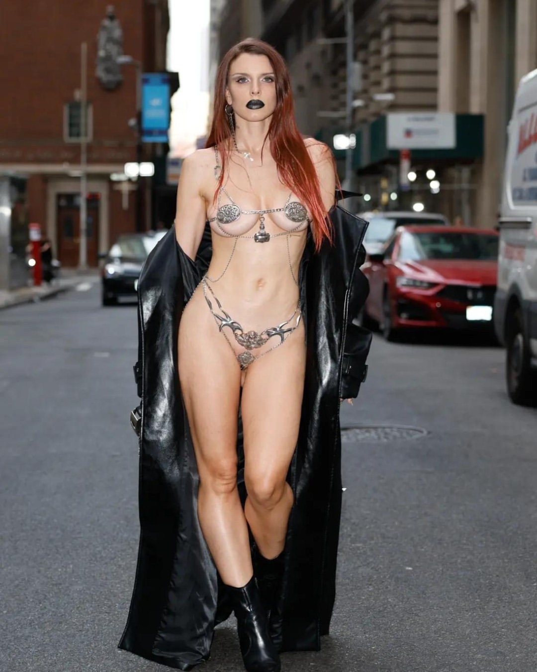 Z zadnjo kreacijo, v kateri je paradirala na modni reviji v New Yorku, ko se je pod usnjenim plaščem pojavila praktično gola, nas je pustila odprtih ust. Njene intimne predele je zakrival le nakit v obliki bikinija. Sprašujemo, kaj še lahko pokaže ali bolje rečeno razkaže, saj je očitno pokazala čisto vse.