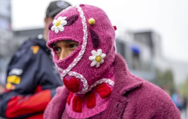 Le kaj ima na glavi?! Dirkač Formule 1 šokiral z rožnato masko.