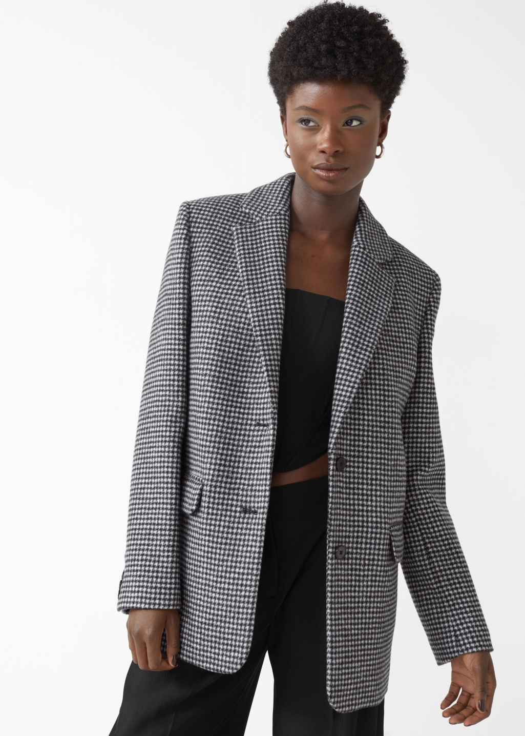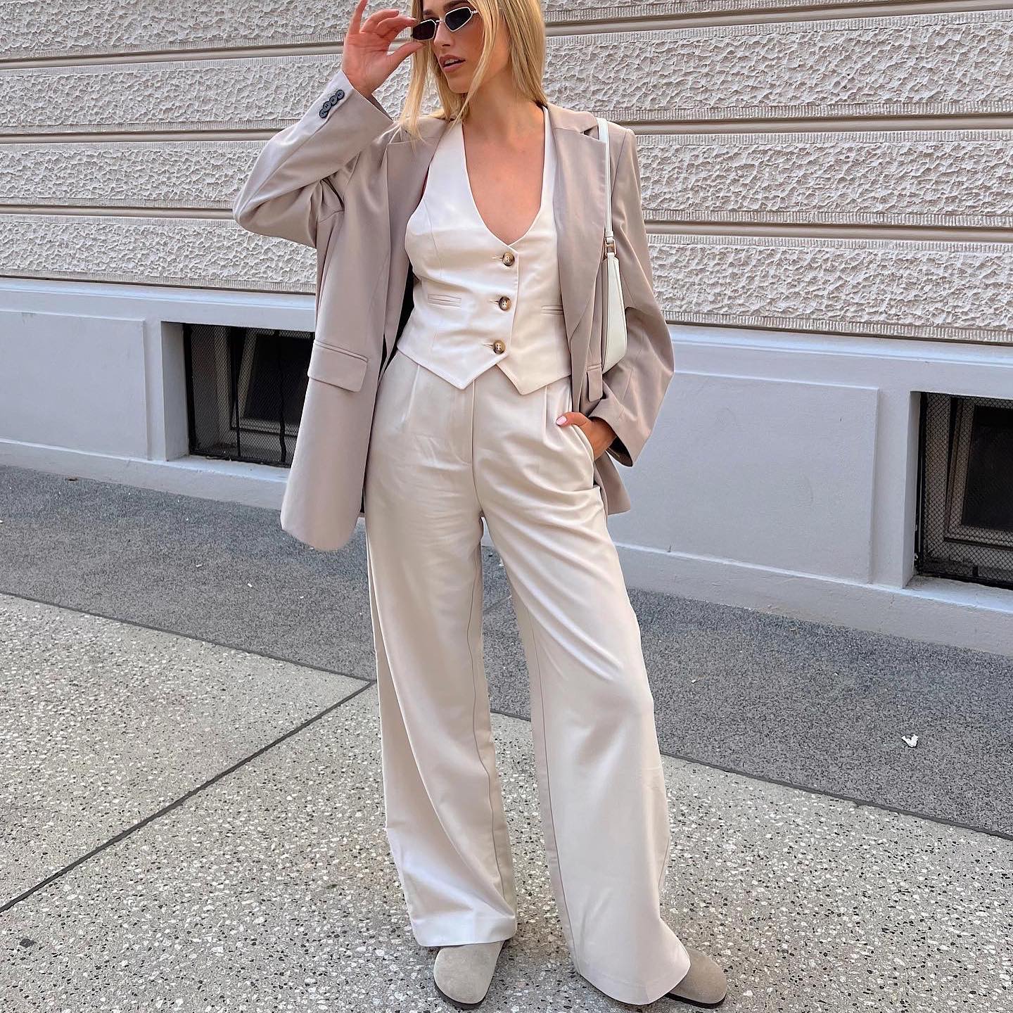 Oversized suknjič v nevtralnih odtenkih, ki je videti kot iz moške omare, bo v hladnejših jesenskih dneh prevzel vlogo jakne, zato ga bomo nonšalantno oblekle čez puli, pozimi pa bo predstavljal eno od plasti pod plaščem.