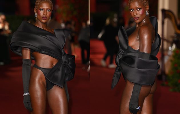 Njeno veliko sporočilo na prsih je sicer pritegnilo pozornost, kar je bil nedvomno njen namen, a mi ne moremo mimo prosojne obleke s korzetom v kožni barvi z rokavicami in šalom, ki je videti uboga in nedokončana.