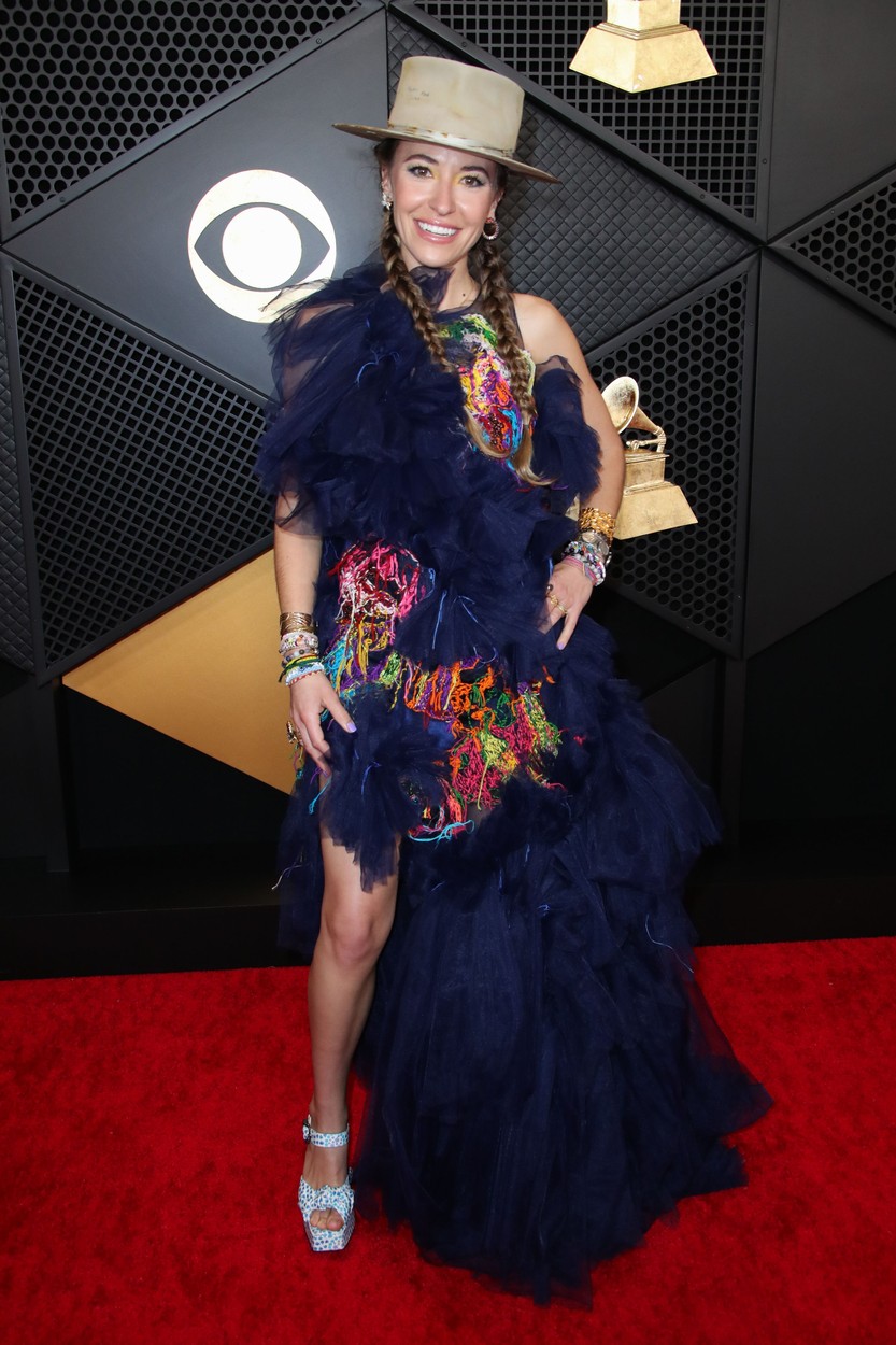 Če Lauren Daigle pri nas še ni tako zelo poznana, pa si jo bomo nedvomno zapomnili po tej diy kričeče živahni obleki, ki bode v oči. Hipijevski videz je dopolnila s klobukom in vrsto zapestnic, pri čemer pa so vzorčasti sandali s platformo govorili povsem drugo zgodbo.