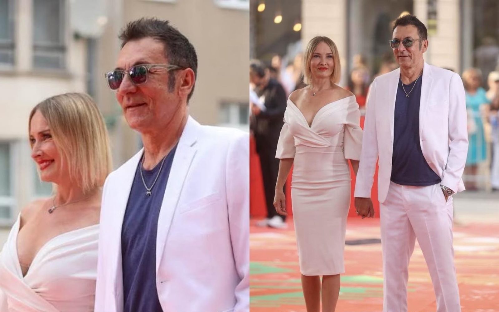 Tanja je nosila elegantno belo obleko s spuščenimi rameni in globokim dekoltejem, Branko pa je bil usklajen v belih hlačah in suknjiču, ki jim je dodal temno modro majico.