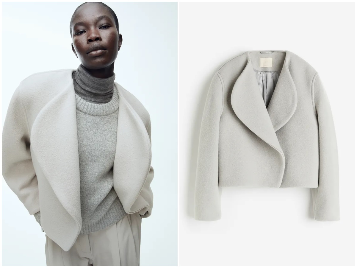 To je jakna iz mešane volne iz najnovejše kolekcije H&M Studio, ki jo je priljubljena high street znamka uvrstila med kose “vrhunske kakovosti”. Krasen model v decentnem sivem odtenku izstopa z zanimivim zaobljenim ovratnikom in ga res zlahka zamenjamo za precej dražji, dizajnerski kos.