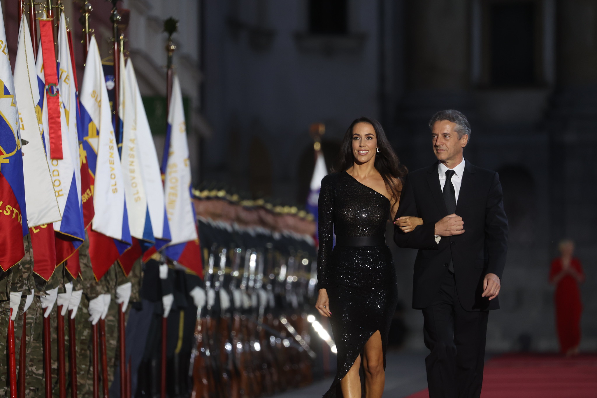 Tina Gaber je na družbenih omrežjih delila utrinke s sobotne prireditve ob dnevu državnosti, ki se je je udeležila kot izbranka predsednika vlade Roberta Goloba. Nekdanja misica in spletna vplivnica je blestela v črni oprijeti obleki z bleščicami, ki je tesno oprijela njene obline in pokazala njene lepe dolge noge.