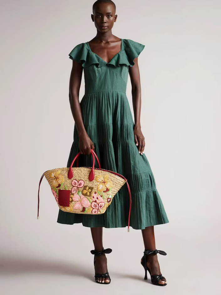 Asos, 39,99 evraCekar iz rafije se bo odlično podal k lahkotni poleni oblekici v najbolj trendi vzorcu te sezone in elegantnim natikačem s peto.