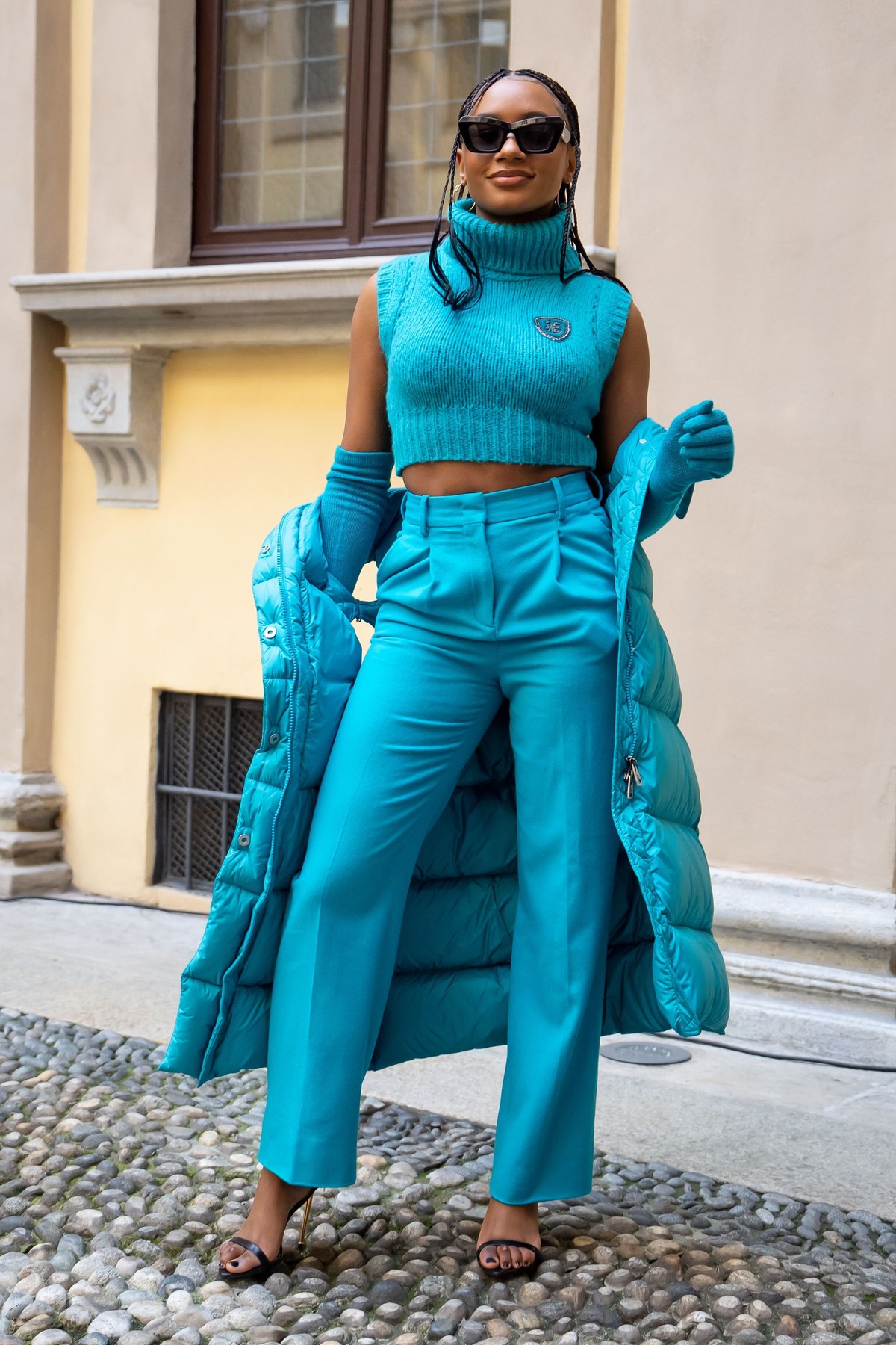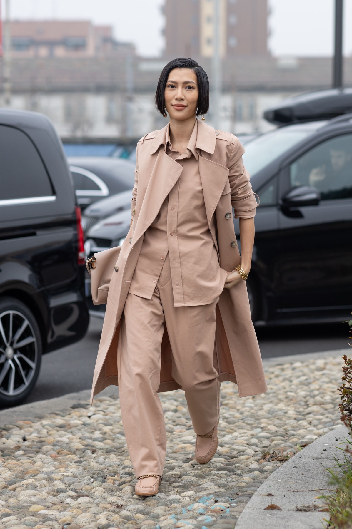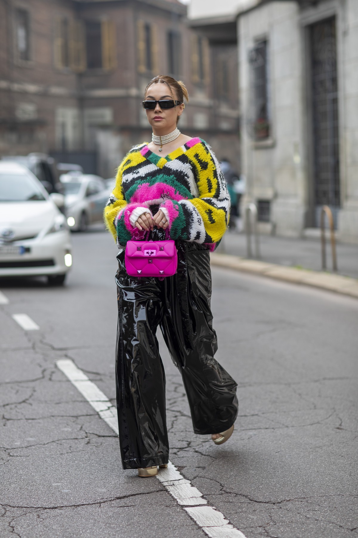 Tako kot v New Yorku, je bil tudi v Milanu eden osrednjih trendov, ki smo ga videli na modnih ulicah, enobarvno od nog do glave. Oblačila v isti barvi ali celo odtenku so dopolnjevali sicer v večini modni dodatki v drugih barvah, a je koherenten videz vseeno prevladoval.