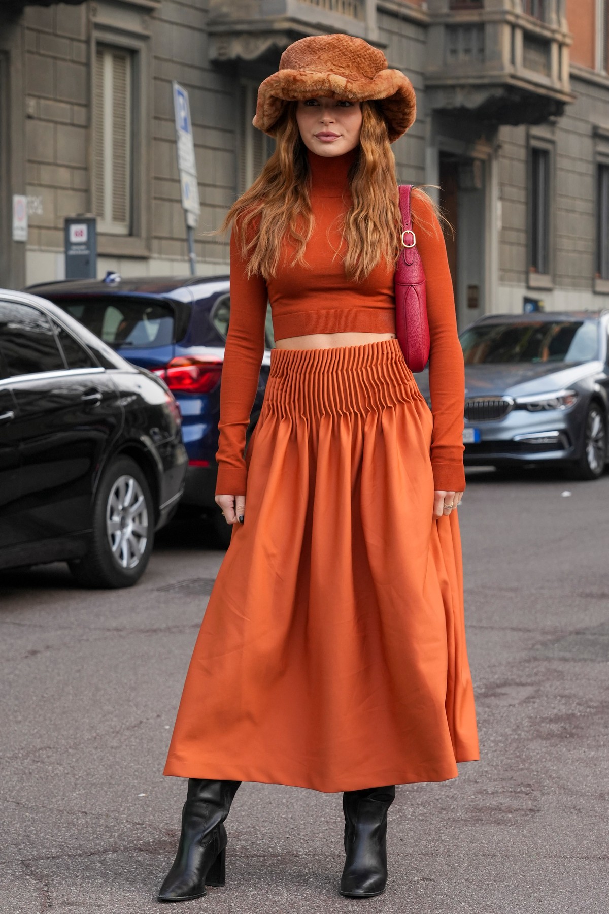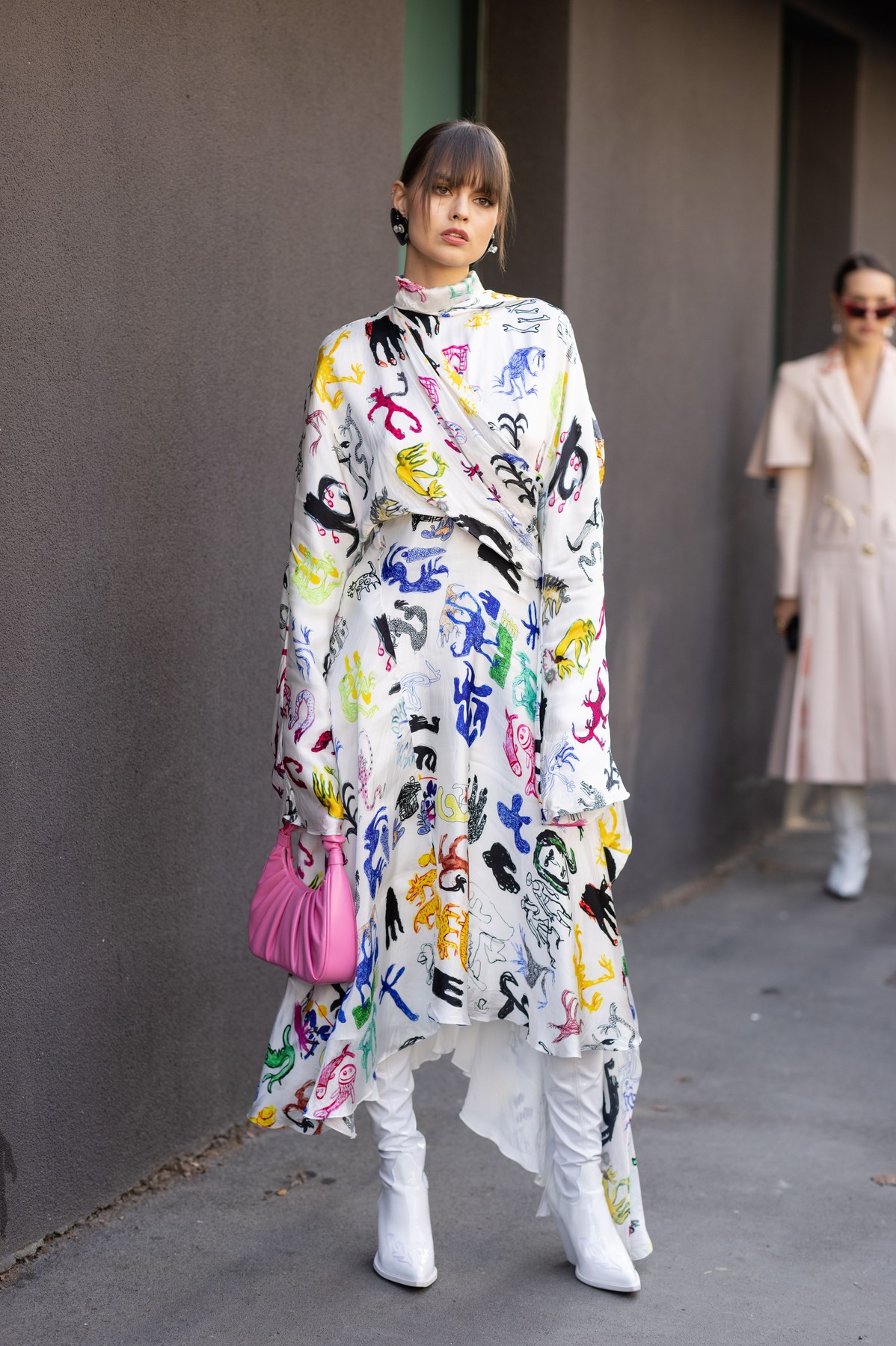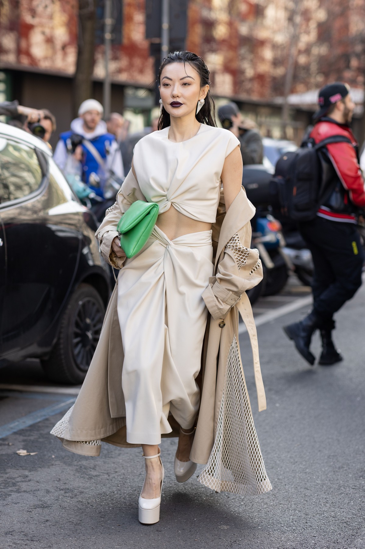 Tako kot v New Yorku, je bil tudi v Milanu eden osrednjih trendov, ki smo ga videli na modnih ulicah, enobarvno od nog do glave. Oblačila v isti barvi ali celo odtenku so dopolnjevali sicer v večini modni dodatki v drugih barvah, a je koherenten videz vseeno prevladoval.