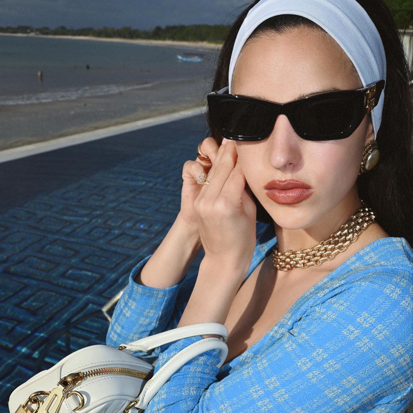 Za na plažo ga kombinirajte z vašimi najljubšimi bikinkami, zlatim nakitom in trendovskimi sončnimi očali, prav tako v stilu Y2K. Za na zmenek se odločite za črn trak, h kateremu oblecite malo črno oblekico in dodajte decenten nakit. V trendu boste tudi če barvo traku kombinirate z barvo torbice in se odločite za vzorčasto obleko.