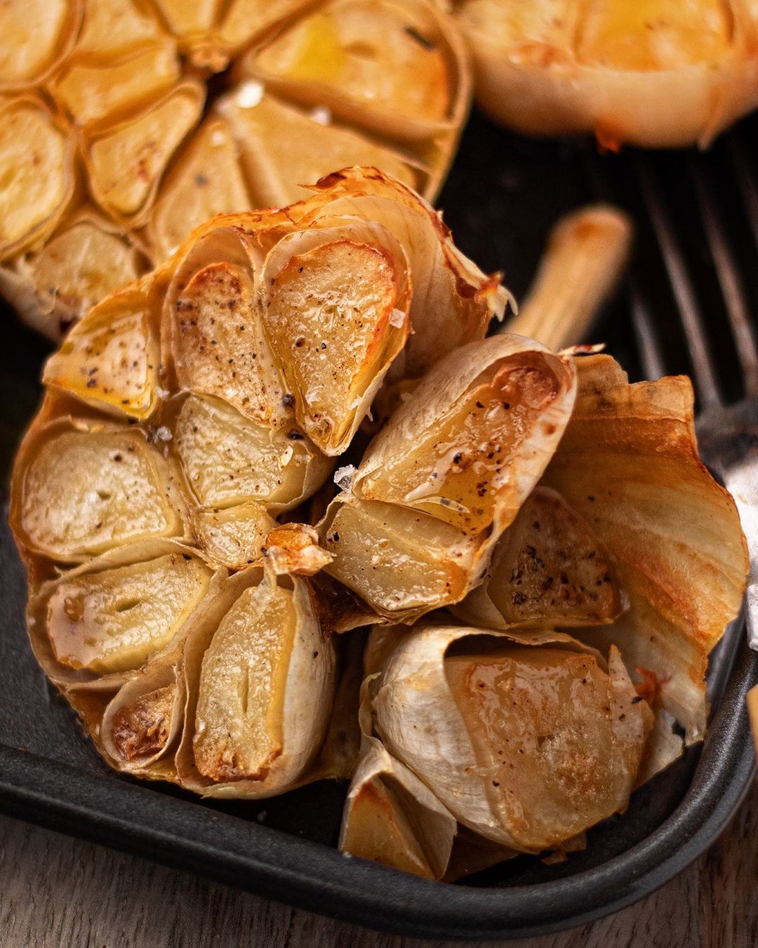 Če obožujete česen iz pečice, ga najprej popecite v stroku zavitega v foliji in prelitega z olivnim oljem.