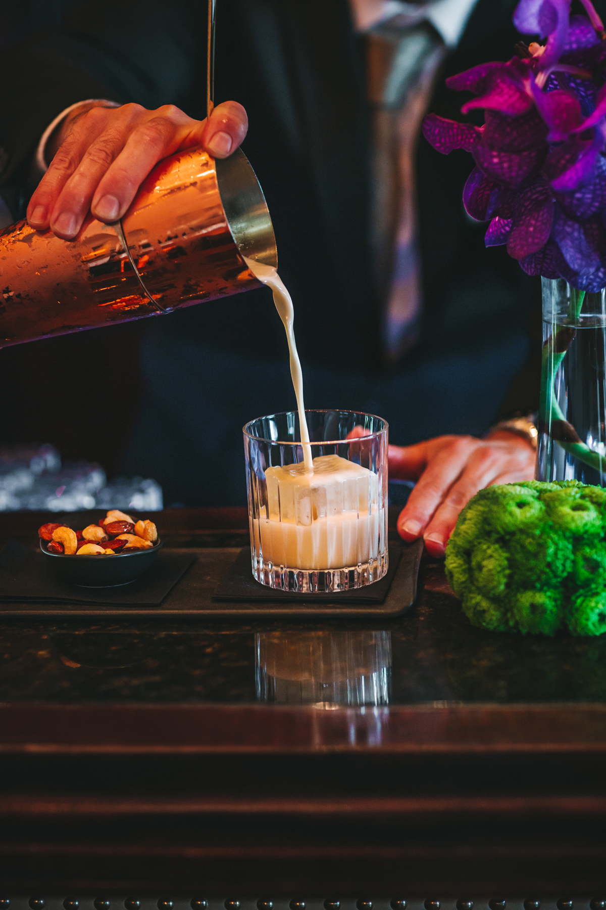 Njegovi izvirni koktajli so pripravljeni po posebnih receptih in tehnikah ter iz vrhunskih sestavin, njihov videz in okusi pa vas bodo zagotovo navdušili. Oleander, Esplanade Fizz, Orient Express, Club ali Prohibition Cup so le nekateri od značilnih koktajlov, postreženih s praženimi mandlji ali pikantnimi oreščki. Na voljo so tudi vedno priljubljene brezčasne klasike, kot so Negroni, Moscow Mule, Margarita ali Mojito.