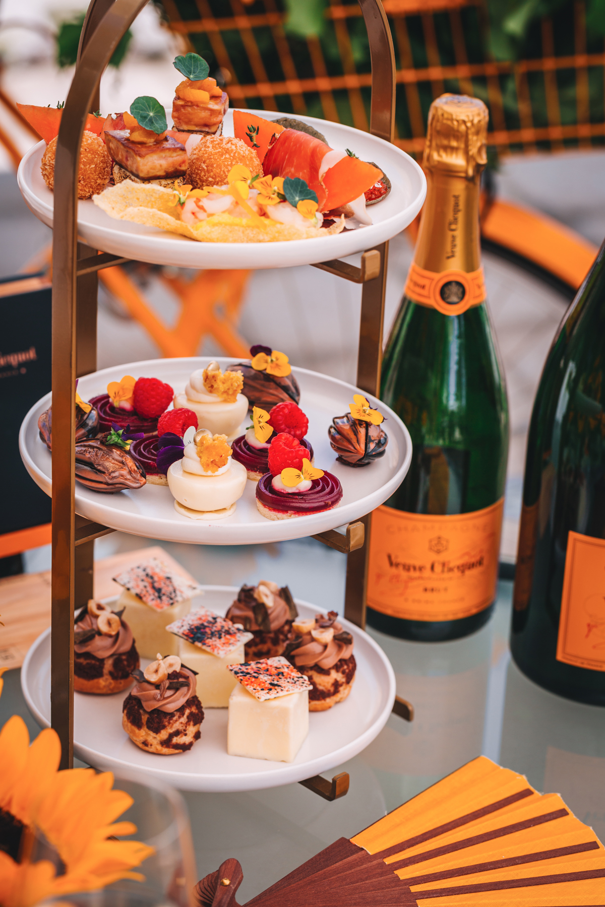 Na meniju Veuve Clicquot tako najdete hrustljave škampe v kadaifu s pomarančnim aiolijem in otroško solato, tacos s črnim sezamom, peno dimljenega lososa in ikrami postrvi, kroket iz bučk in limone, pršut z melono in medom, pomarančna žametna torta z maskarponejem, vaniljo in karamelizirano hruško, choux z lešniki in mlečno čokolado, bonboni iz malin, agrumov in bezga ter palčki s svežim sezonskim sadjem. V kombinaciji z vrhunskim šampanjcem Veuve Clicquot bodo vaše druženje dvignili na višjo raven.