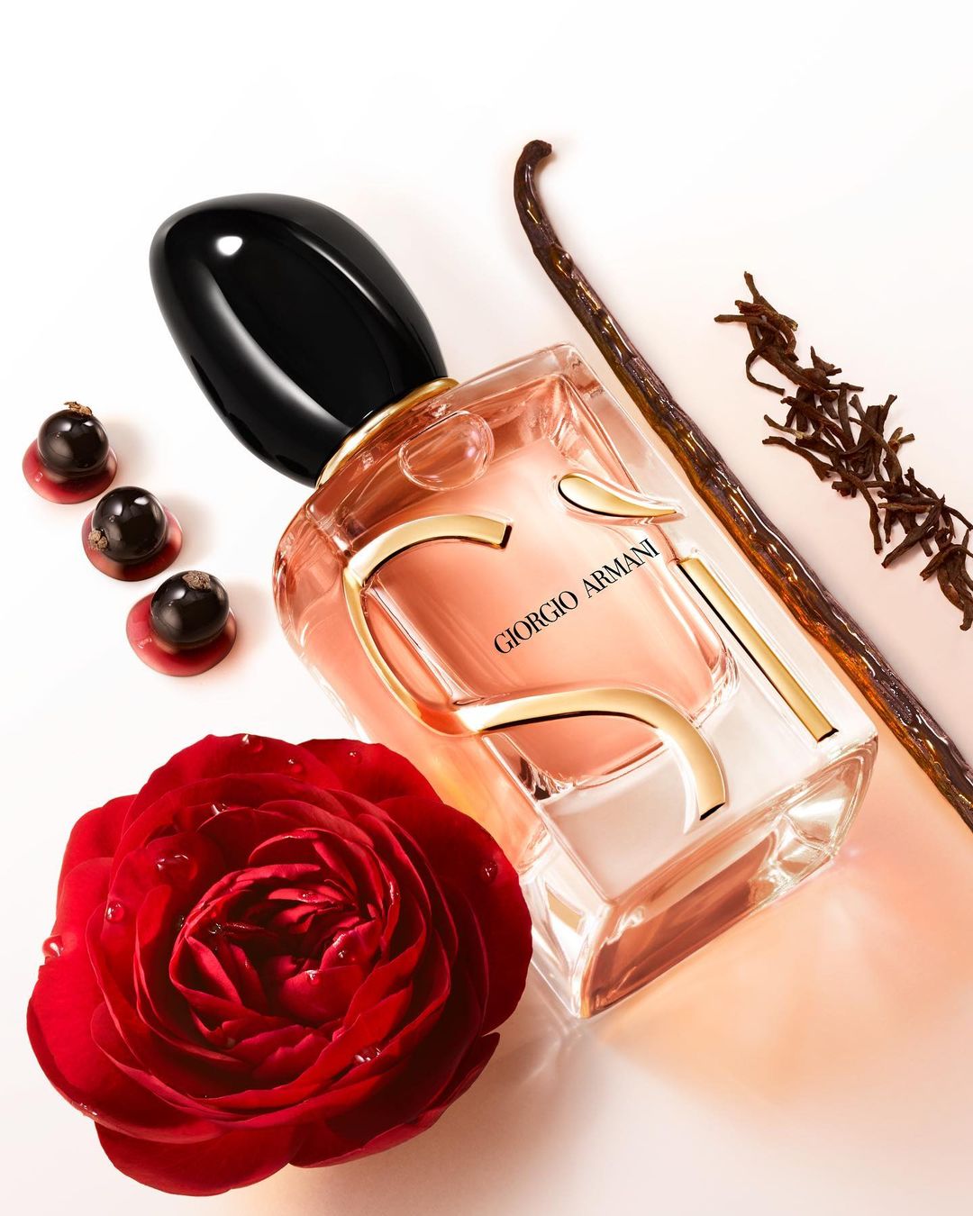 Nova dišava SÌ EDP INTENSE združuje nektar črnega ribeza z žametnim cvetličnim srcem in čutno cvetico vanilje ter črnega čaja. Omamno dišavo je glavna parfumerka Julie Massé ustvarila deset let po nastanku prvotne dišave SÌ.