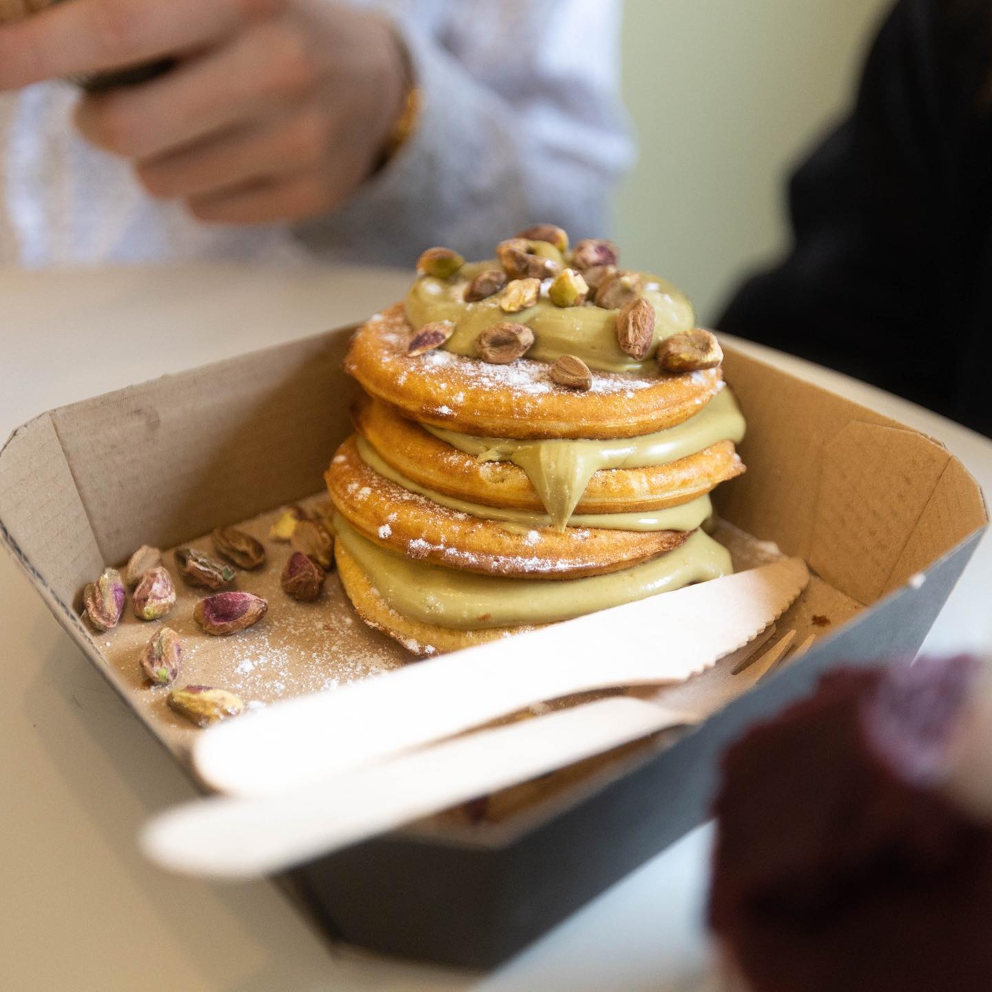 Nisem si ravno predstavljala, kako se pistacija in pasijonka podata druga k drugi, a okus je bil fenomenalen. Ravno prava mešanica sladkega, kremastega in kislega. O sladoledu razmišljam, odkar sem ga preizkusila in po vsej verjetnosti se bom že jutri vrnila ponj. In tudi palačinke so me navdušile, saj so bile prelite s pravim kvalitetnim pistacijevim namazom, ki sem ga zmazala do zadnjega kančka. Prave puhaste ameriške palačinke, z ravno pravo količino sladkobe. Prekašajo številne palačinke, ki sem jih že preizkusila.
