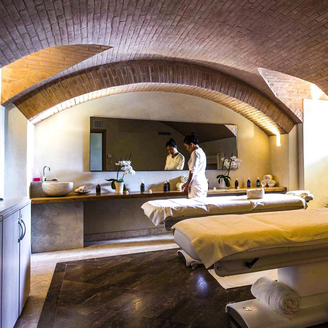 Na površini 1500 kvadratnih metrov se razprostira pet elegantnih sob za tretmaje s pogledom na dolino Val d’Orcia, mokri prostor z dvema turškima kopelima, panoramsko savno, ledeno fontano in čustvenimi tuši, ki z aromaterapijo in kromo terapijo spodbujajo vse vaše čute. Polovica sob ima obenem naravno vročo termalno vodo neposredno v namenski pipi v zasebni kopalnici. Na voljo je tudi telovadnica z opremo Technogym, ki se nahaja zunaj pod verando.