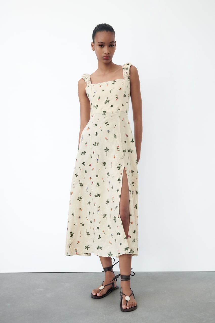 Svež, zračen laneni material zagotavlja udobje in enostavnost nošenja, zaradi česar je ta obleka idealna za poletne dni in večere. Ne glede na to, ali je vaša prioriteta udobje, stil ali oboje, bo vsekakor izpolnila vsa vaša pričakovanja. Obleka je na voljo v Zari za 49,95 evrov.
