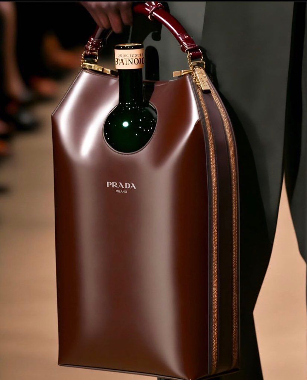 Prada je na milanskem tednu mode predstavila moško torbo, ki je v hipu navdušila splet. Gre za pokončno torbo iz gladkega usnja v rjavi barvi, ki je namenjena nošenju … buteljk! Tako se lahko na večerjo k svoji dragi ali pivski večer s fanti odpravite z ličnim modnim dodatkom, v katerega spravite steklenico vina, konjak ali šnops oz. vašo najljubšo alkoholno pijačo.
