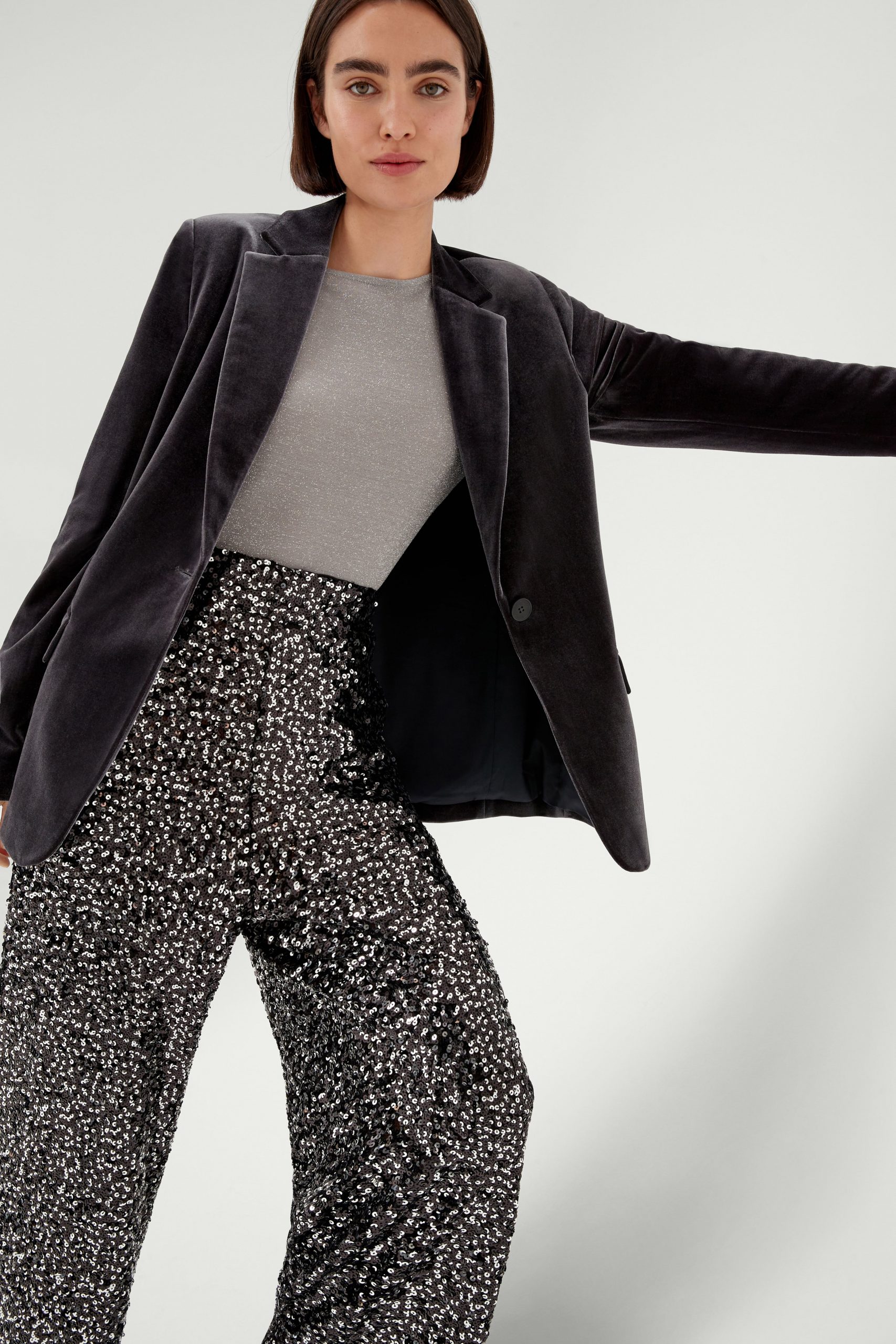 Nova praznična kolekcija je polna bleščic in brušenega žameta, ki dodajajo glamur in razkošje vsakemu videzu, materiali pa so svečani in elegantni.