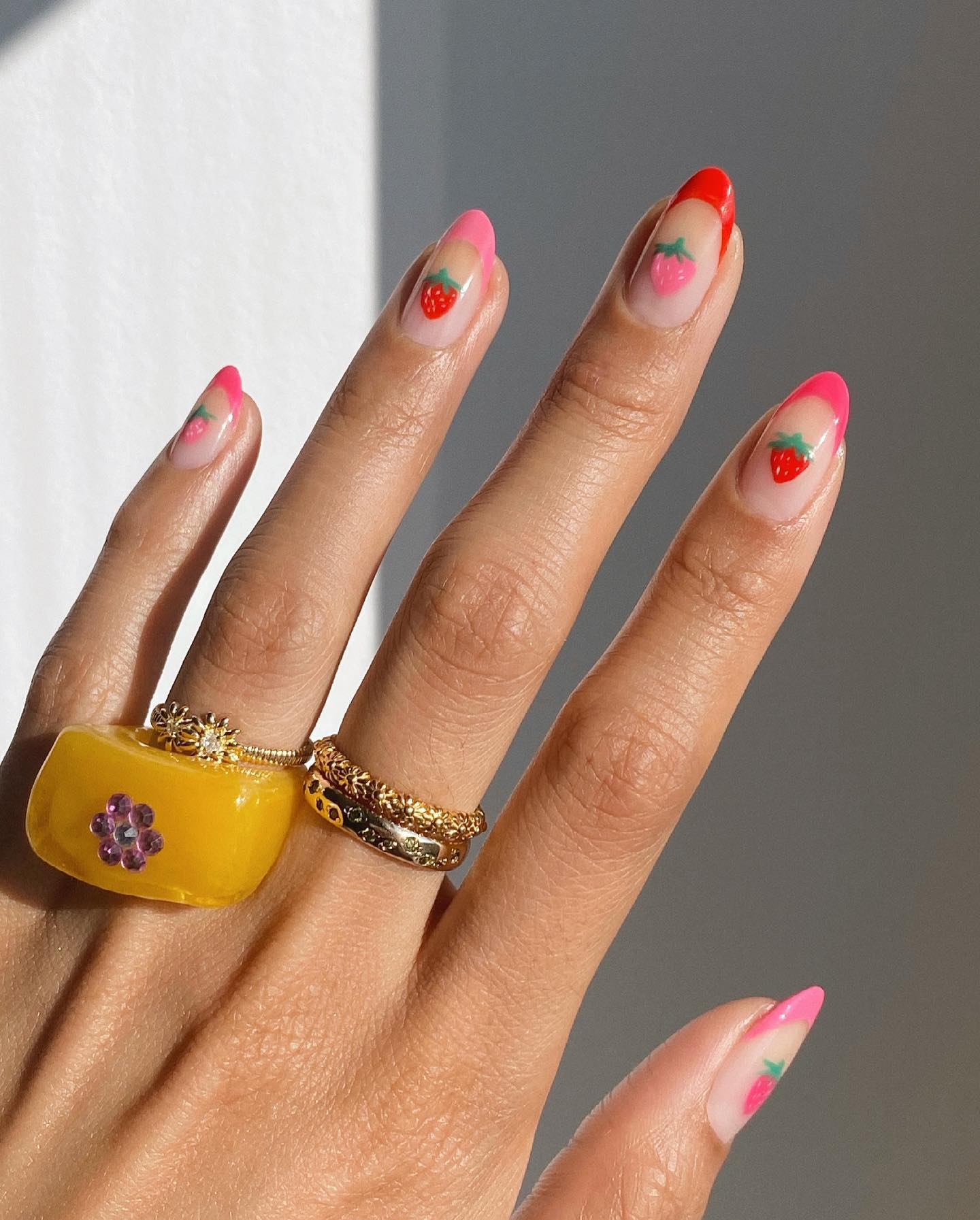 Priljubljeno gibanje ‘strawberry girl’ iz prejšnjega poletja naj bi se zanesljivo vrnilo in že zdaj se je iskanje ‘strawberry nails’ povečalo za 140 odstotkov. Jagode na nohtih so vsekakor motiv, ki bo v vaš videz vnesel dozo igrivosti in mladosti.
