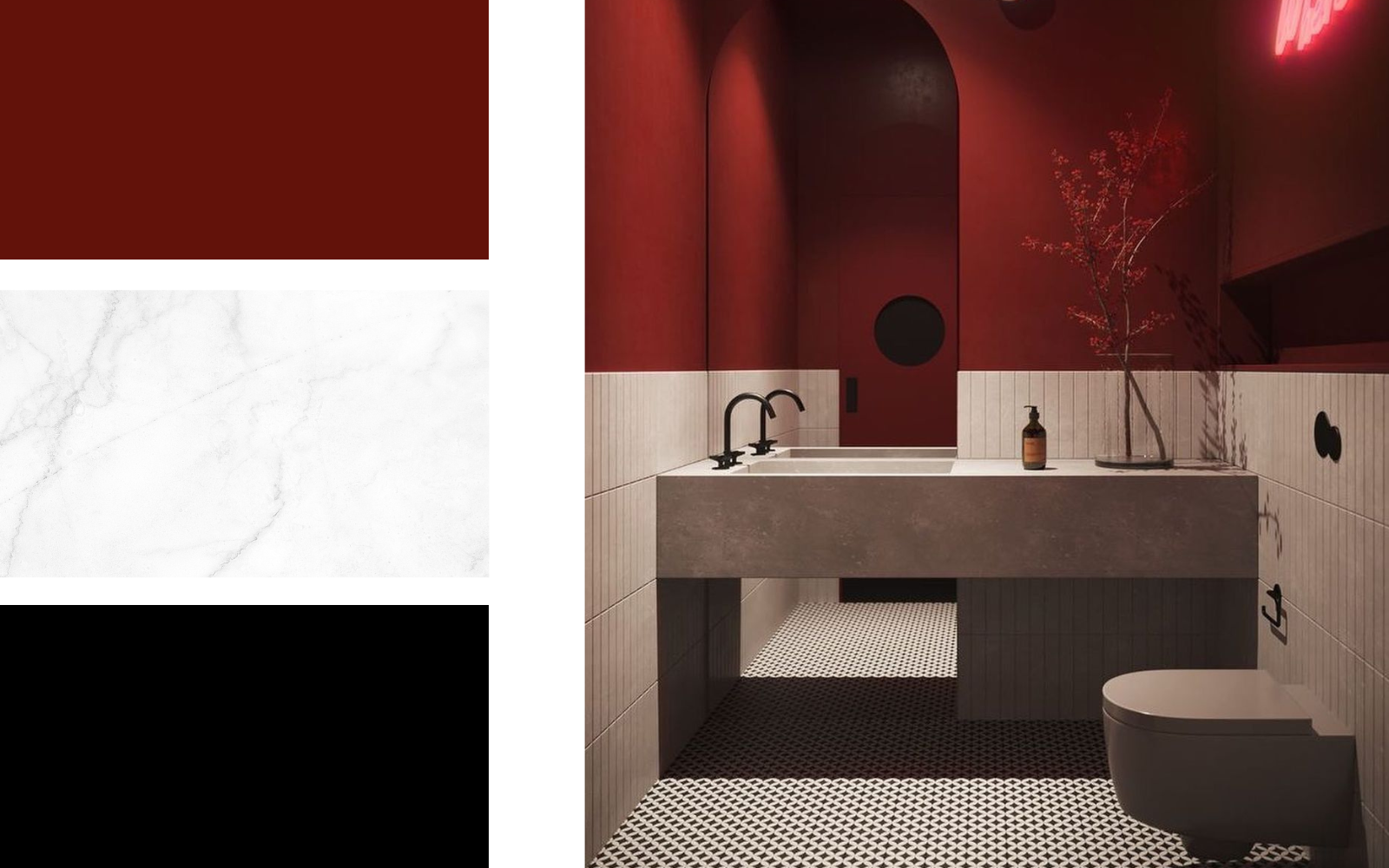 Temno rdeča + svetel marmor + črna