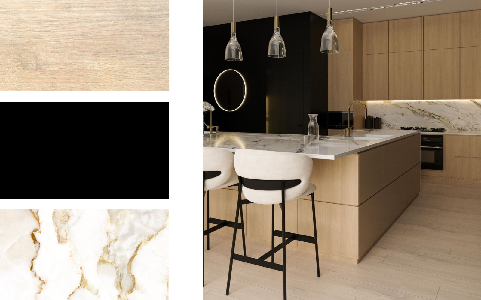 Svetel les + črna + bež marmor