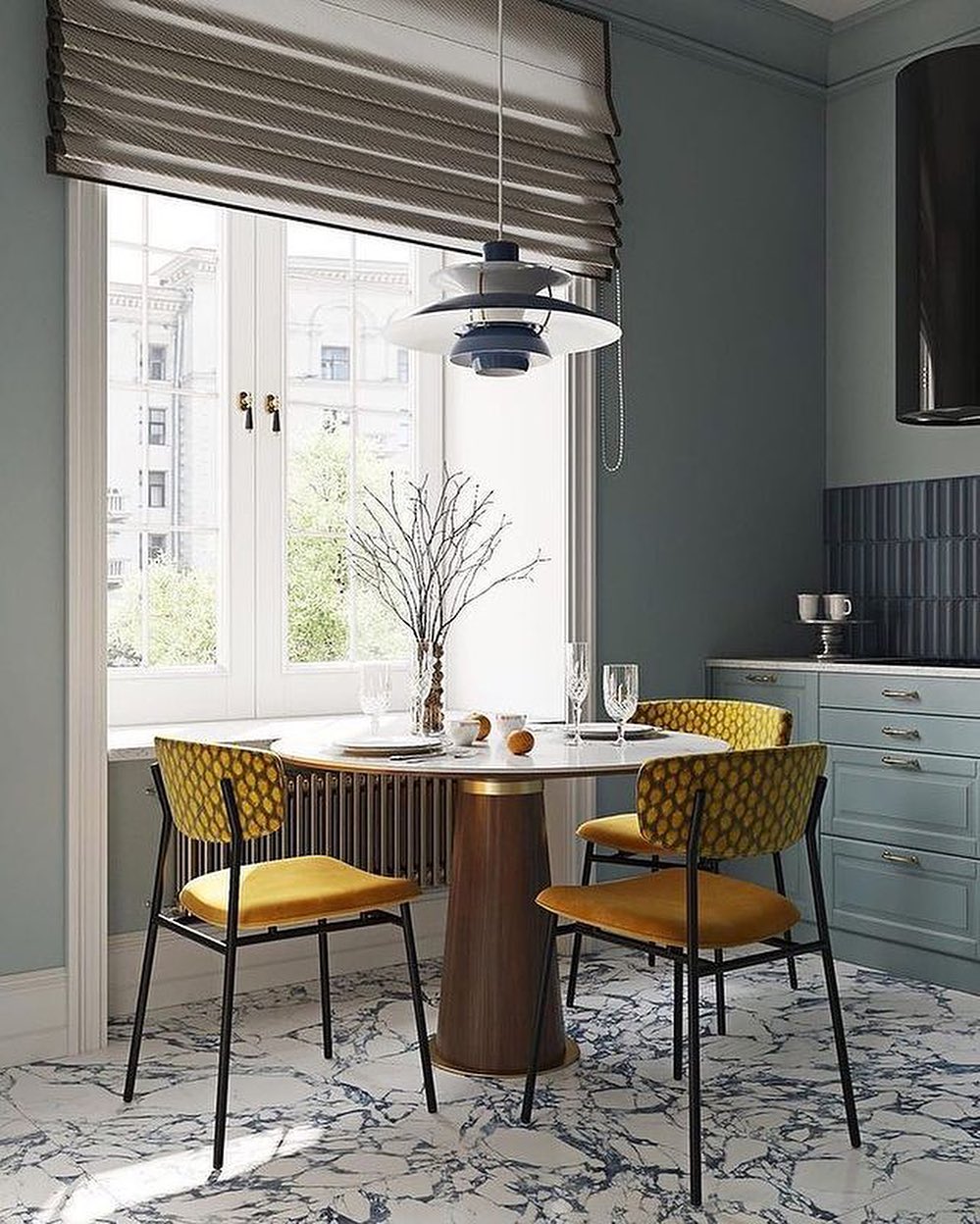 Ledeno modra + zlata + marmor