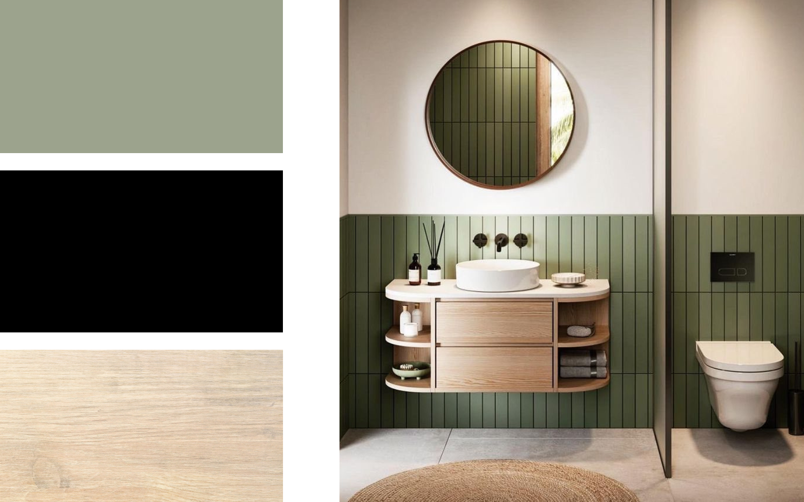 Olivno zelena + črna + svetel les