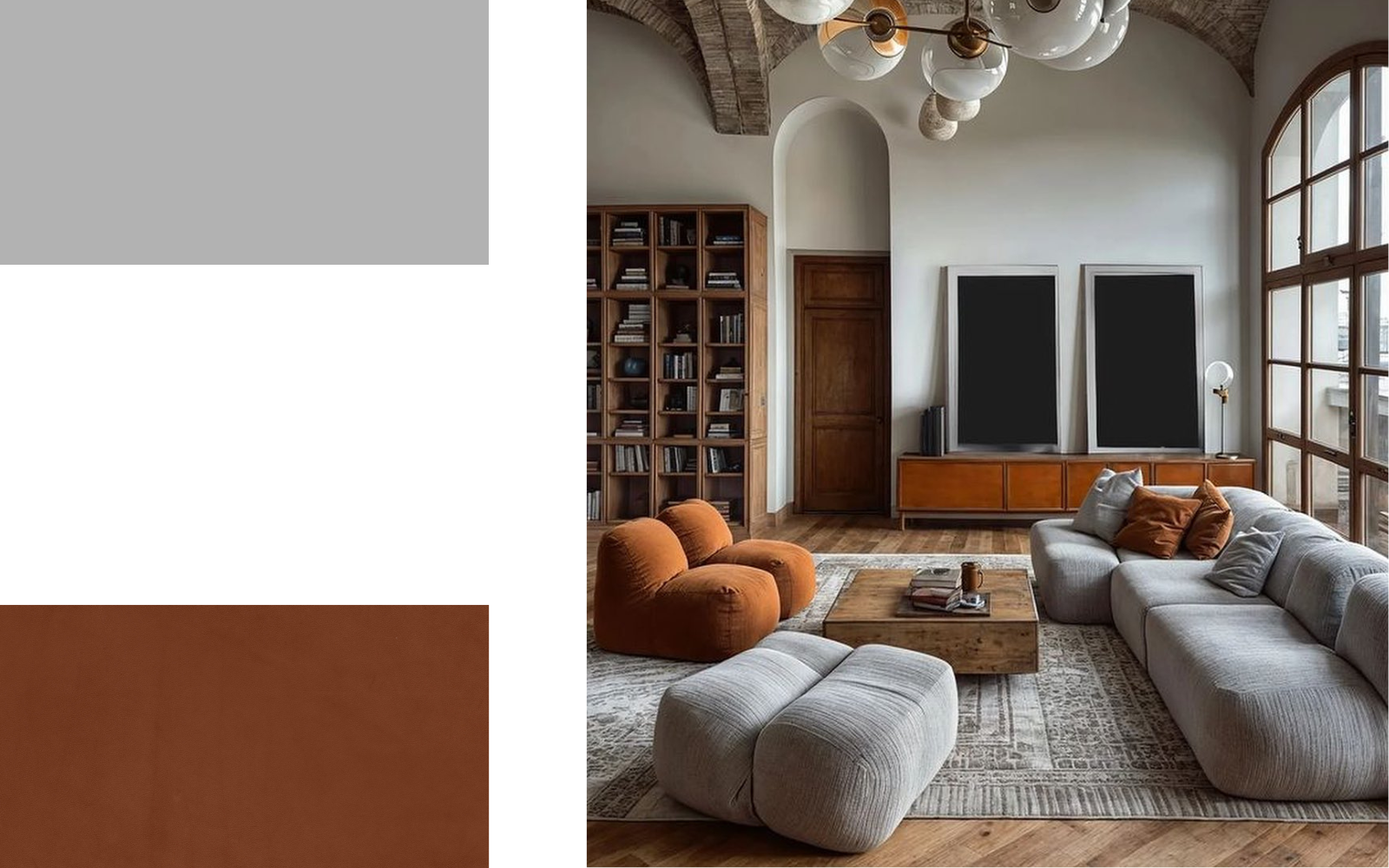 Betonsko siva + bela + konjak rjava
