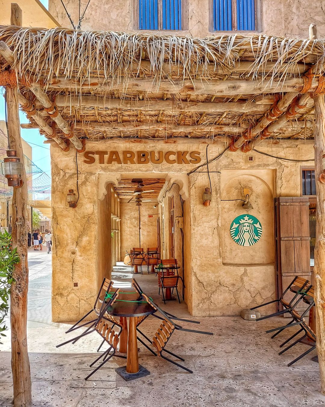 Zunanjost Starbucksa je lesena s slamnato streho in preprostimi zunanjimi sedeži. Kar zadeva notranjost, je zelo minimalistična z lesenim pohištvom, ki dopolnjuje celoten prostor. Rustikalen videz tega Starbucksa ohranja čar Dubaja.