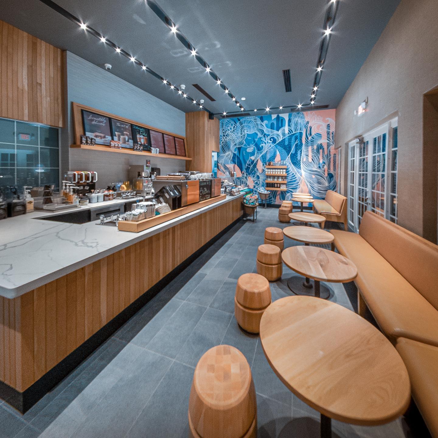 Od zunaj je kavarna videti kot nekaj iz filma Wesa Andersona, notranjost pa ima poslikavo morske deklice, ki jo je naslikala kolumbijska umetnica Maria Camila Bernal Toro. S pastelno rožnato zunanjostjo z odtenki sladke vate je ta Starbucks tudi idealen kraj za opazovanje sončnih zahodov.