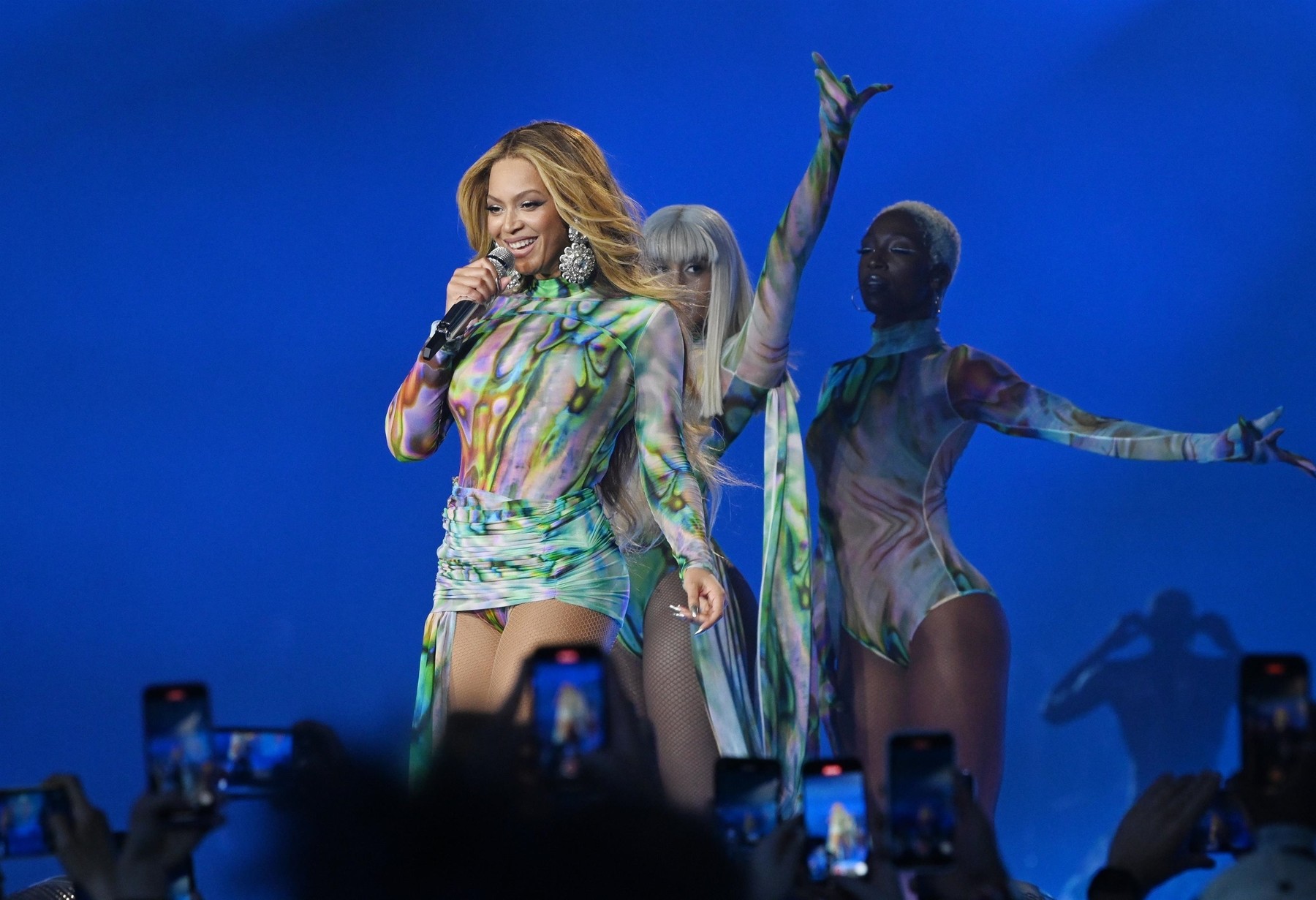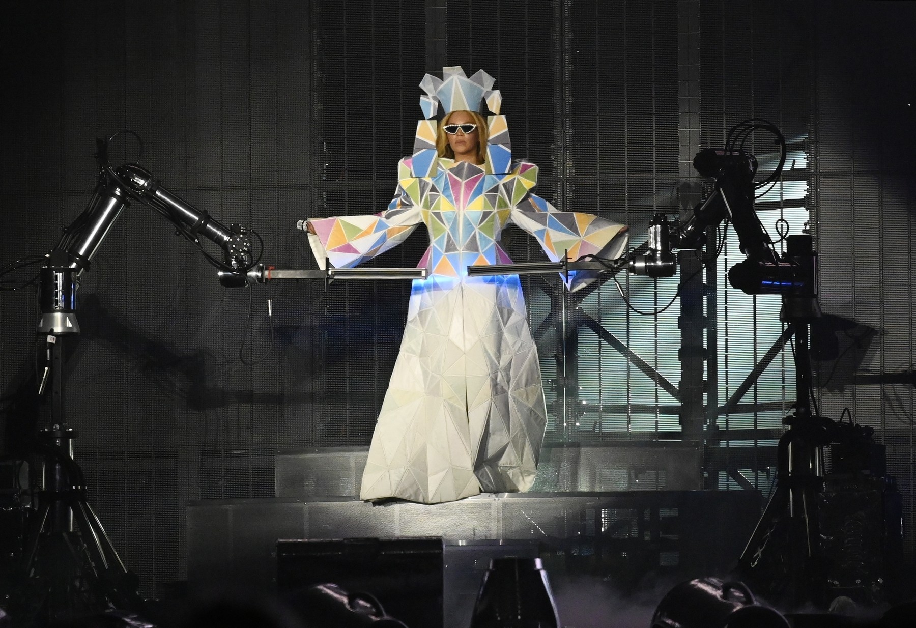 Svetloba je bila ključen element, saj so številne obleke vključevale holografske ali odsevne obdelave, ki so vizualno estetiko albuma mojstrsko prilagodile stadionskemu okolju. Beyoncé je osupnila z obleko japonske znamke Anrealage, ki pri izpostavljenosti UV svetlobi spremeni barvo, za kar sta poskrbeli dve velikanski robotski roki.