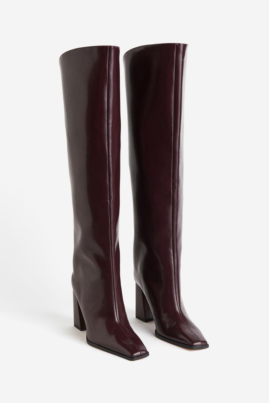 Gre za bordo rdeče škornje, ki segajo nad kolena in so nekoliko širšega kroja. S peto 8,5 cm so idealna izbira za vsakodnevne poslovne kombinacije ali ležerne izlete v mesto, seveda pa niso izključene niti večerne priložnosti.