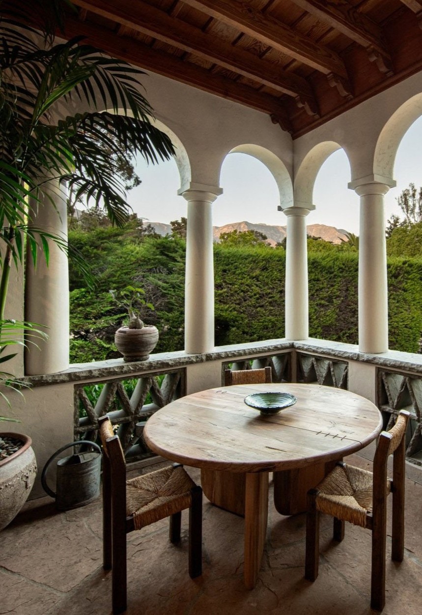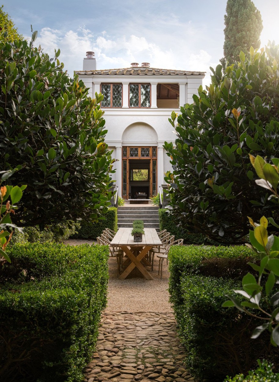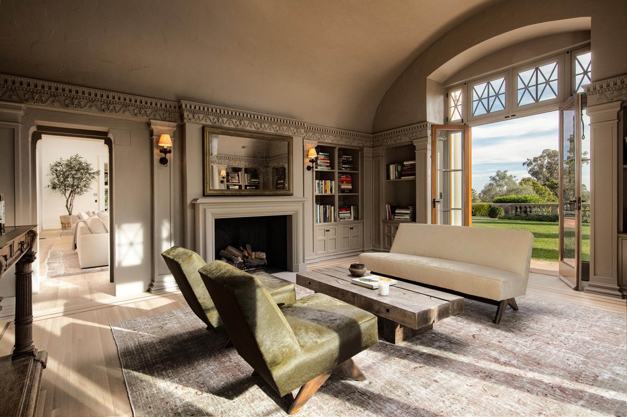 Vila je bila okoli leta 2000 popolnoma prenovljena, DeGeneresova pa jo je preoblikovala v minimalistično in pomirjujoče nevtralno zatočišče, ki uteleša trenutni trend mirnega razkošja. V nasprotju s številnimi drugimi zgodovinskimi dvorci v Montecitu je redka enonadstropna rezidenca, katere vse sobe se odpirajo na osrednje dvorišče, prepredeno z rimskimi stebri.